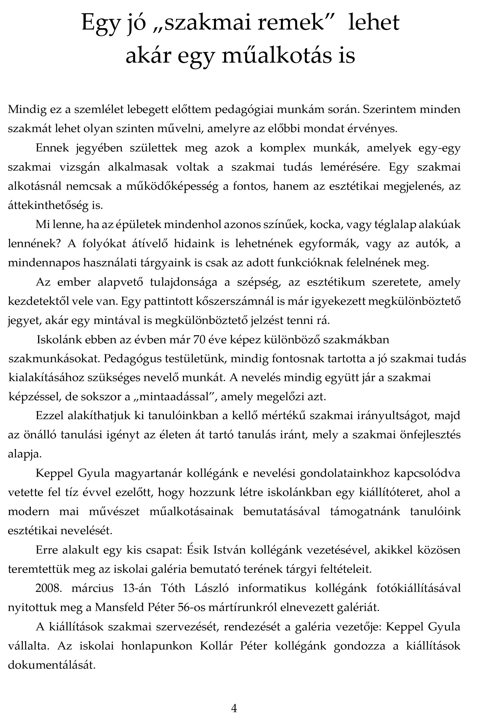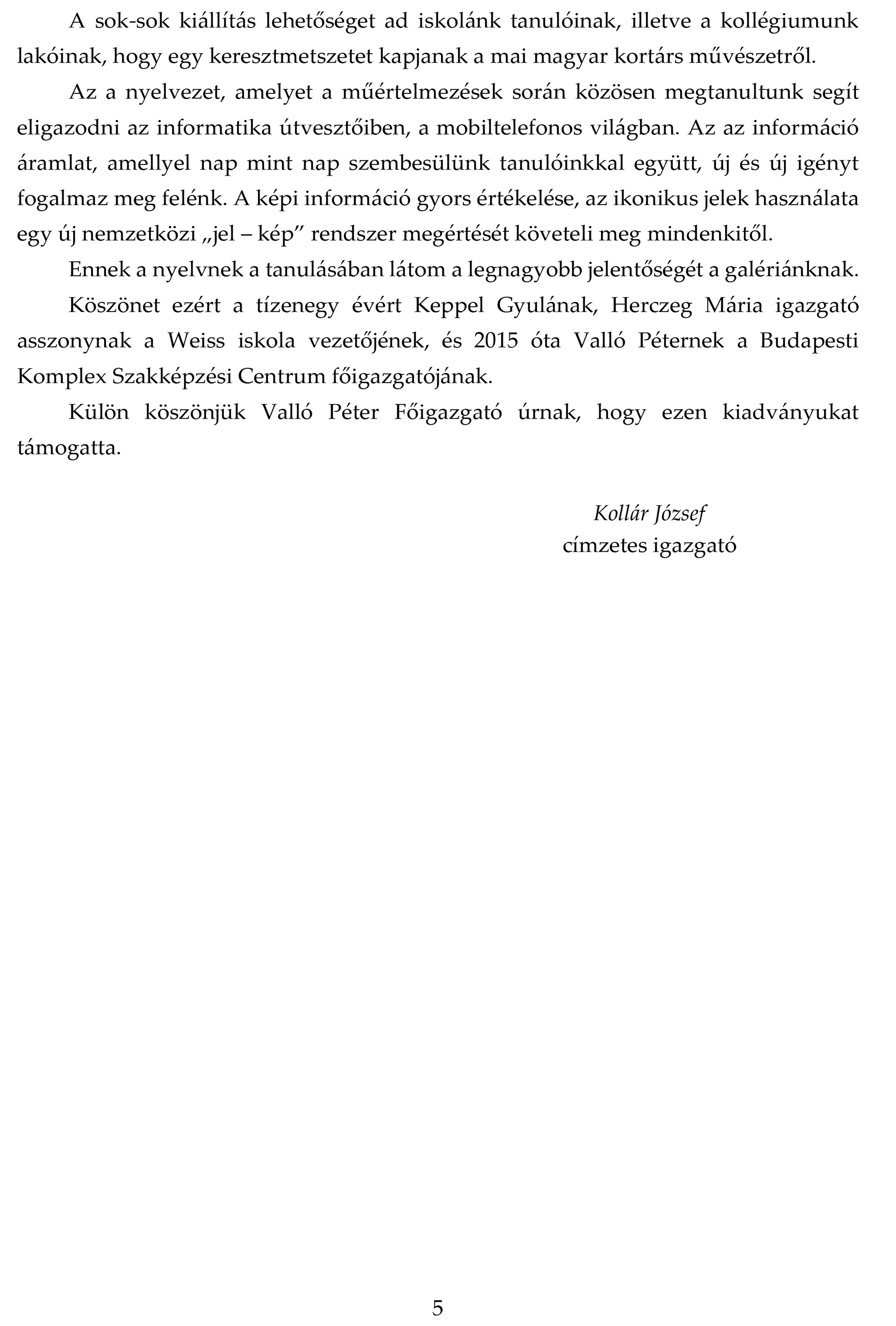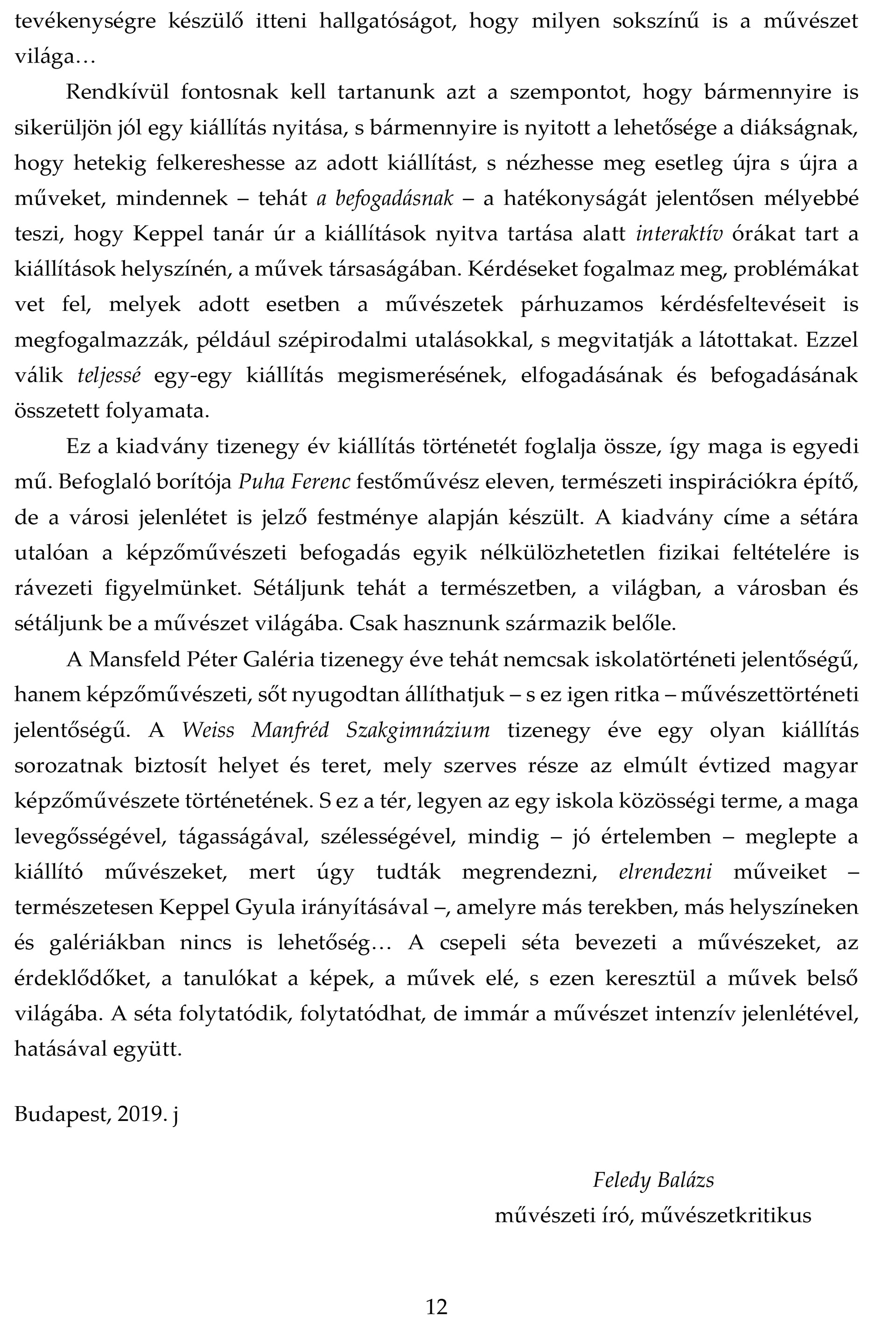 2019-ben az iskola fenntartója: a BKSZC Valló Péter kancellár támogatásával megjelentette a Séta a Szigeten című könyvet, amely az eddig kiállított művészek teljes anyagát tartalmazza.