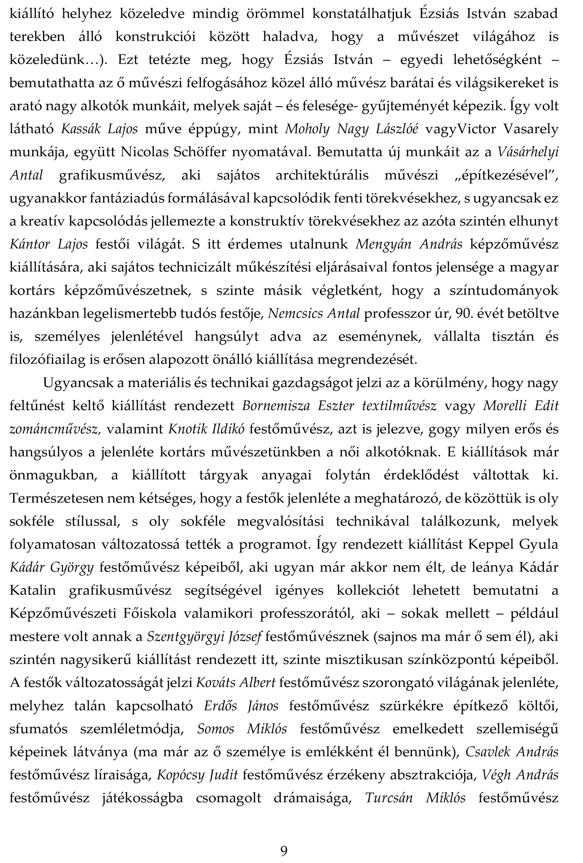 A 2008-tól kiállított művészek időrendben: Tóth László, Erdei Éva, Szegedi Tamás, Kvasznay Gulyás Margit, Pantl Mihály, Ábrahám Rafael, Bakallár József, Kolozsvári Grandpierre Károly, Óváry Géza, Somodi-Hornyák Szilárd, Lynda Stevens, Misch Ádám, Ur Eleonóra, Lacza Márta, Kosch Péter, Vattay Elemér, Kőrösy Attila, Fülöp Mihály, Orosz Péter, Varga Patrícia Minerva, Velekei József Lajos, Haraszty István, Némethy Georgina, Budahelyi Tibor, Klimaj György, Puha Ferenc, Mátai Attila, Somogyi György, Szentgyörgyi József, Aknay János, Kemény Zoltán, Kováts Albert.