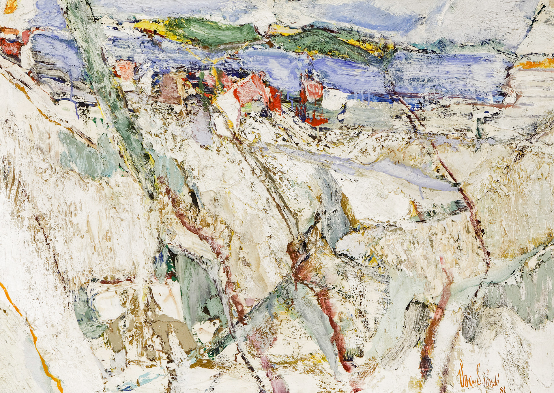Ecsetjárása, forma – és színvariációi nemcsak nyers effektusokat közvetítenek, de a látott, megélt világ újraértelmezésével, a szép, mert így igaz fölismerésével is szolgálnak.