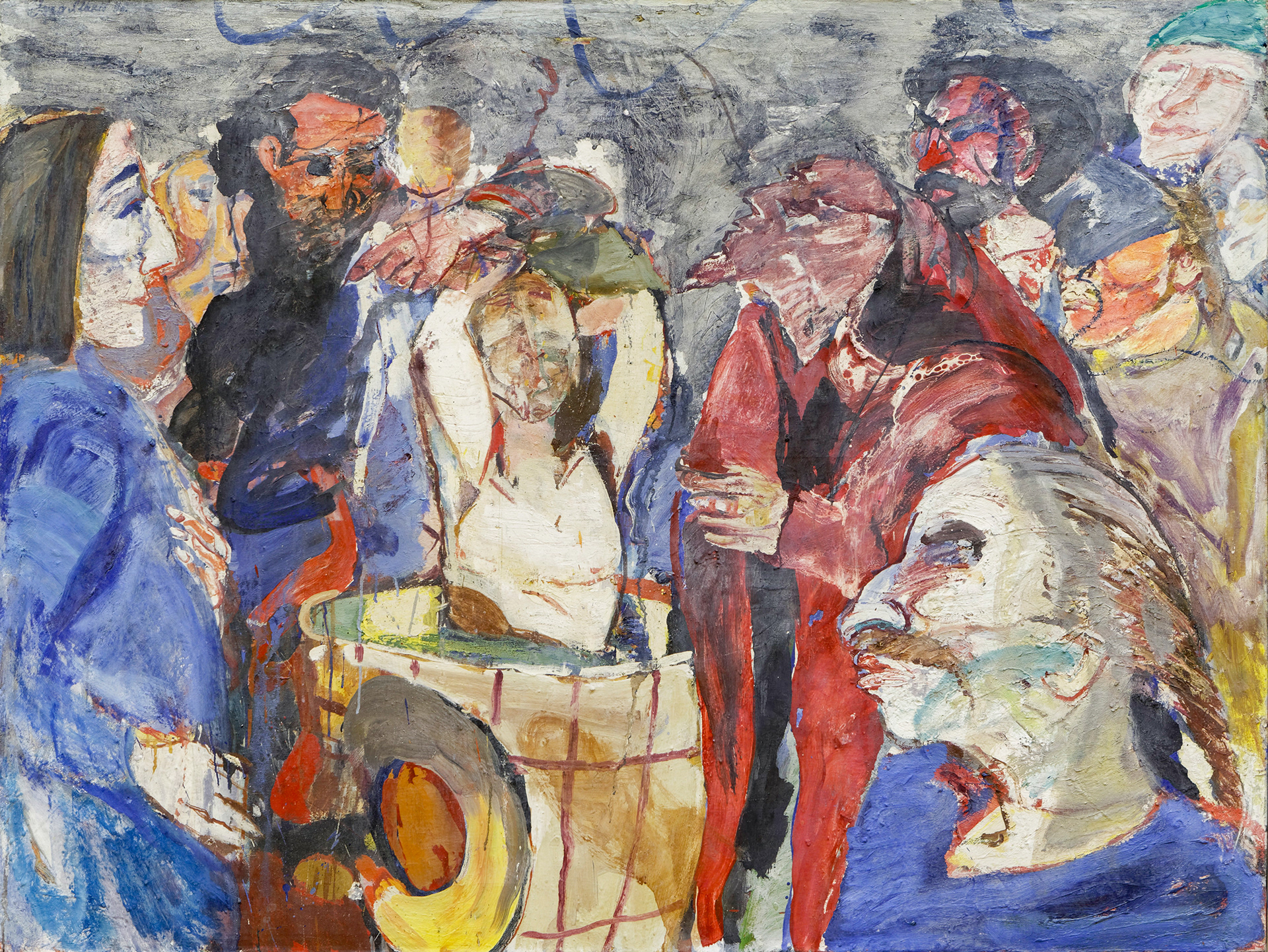 A képtervek első asszociácóit őrző rajzok is elárulják, alkotójukat mindenekelőtt a tér és az alakok viszonya, az örökös mozgás foglalkoztatja. Az izgatott vonalak mögött drámaian expresszív indulatok forrnak, viaskodnak. Innét adódik, hogy festményein a falra való monumentalitást, freskószerűséget – melyhez eredendő hajlama van – mindig az elmozdulás kényszere, a lebírhatatlan belső nyugtalanság feszíti, ezért van, hogy a kacskaringós görbe vonalakkal mindig szívesebben, kifejezőbben bánik, mint a szabályosakkal.