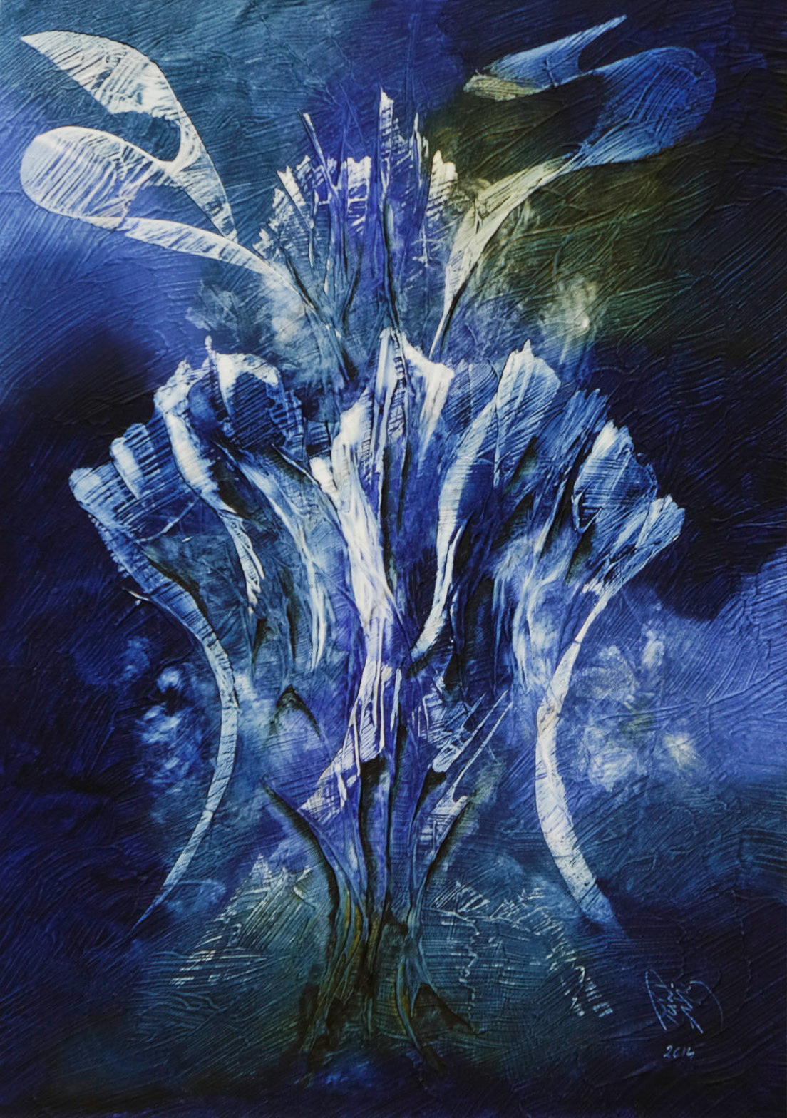 Egyéni kiállításaimat szeretem egy tematika köré szervezni, s bár a jelen anyag egyik festményének is éppen a Gondolatfelhő a címe, mégis inkább tágabb értelemben leíró ez a cím. Egy-egy engem foglalkoztató témát nagyobb sorozatokban szeretem kidolgozni. Festészetemben nagyon fontos szerepet játszik a zene. Korábban az alkotói inspiráció részeként kerestem olyan zeneműveket, melyek hozzásegítettek a festészeti téma megfogalmazásához. A képanyagból látható néhány itt, melyek konkrétan egy kortárs zeneműhöz készültek. Sok esetben gyakorlatilag teljes csendben, belső elmélyülésben fogalmazom meg festészeti gondolataimat és viszem azokat a vászonra. A kiállítás további festményeit inkább mintegy benső zenei képeknek írnám le, melyek expreszszív absztrakt, néhol lírai elemeket is hordoznak. Az absztrakt elnevezés klasszikus értelmezés szerint inkább valamilyen külső dolog, benyomás, megfigyelt jelenség elvonatkoztatását, absztrahálását jelenti, talán inkább egy kívülről befelé irányuló folyamatként értelmezhető. Az én esetemben inkább nevezném "gondolati festészetnek", amely inkább egy belülről kifelé irányuló folyamatot ír le, mely során ezek a benső, úgynevezett " zenei képek " fogalmazódnak meg bennem, amelyek azután a vászonra kerülnek. Az engem foglalkoztató történések, benyomások, érzések, gondolatok átlényegülnek, valamiféle képi-festői érzetként csapódnak le az alkotói folyamatban és kerülnek vászonra. Nem szeretek konkrét, egyszerű válaszokat adni, sokkal inkább jó kérdéseket, nyitott felvetéseket keresek egy adott problémához. Igyekszem egy saját festői nyelvezetet, kódrendszert, egyedi világot létrehozni, de mégis oly módon, hogy a befogadásra kész néző megszólítva érezze magát.