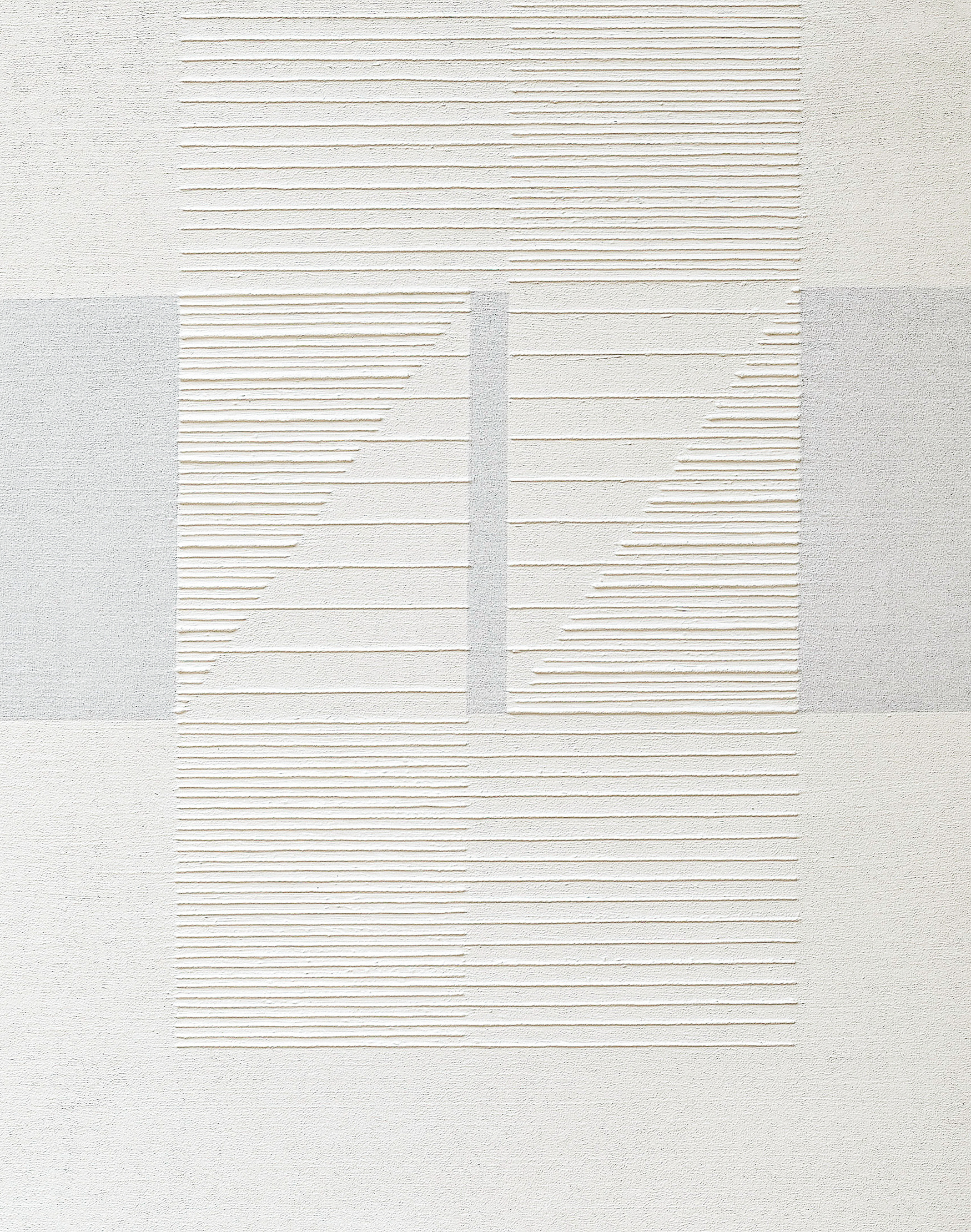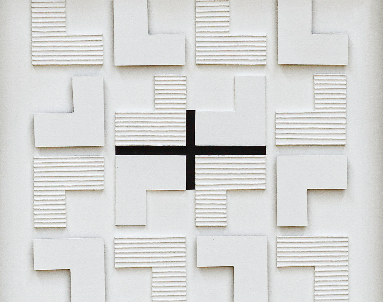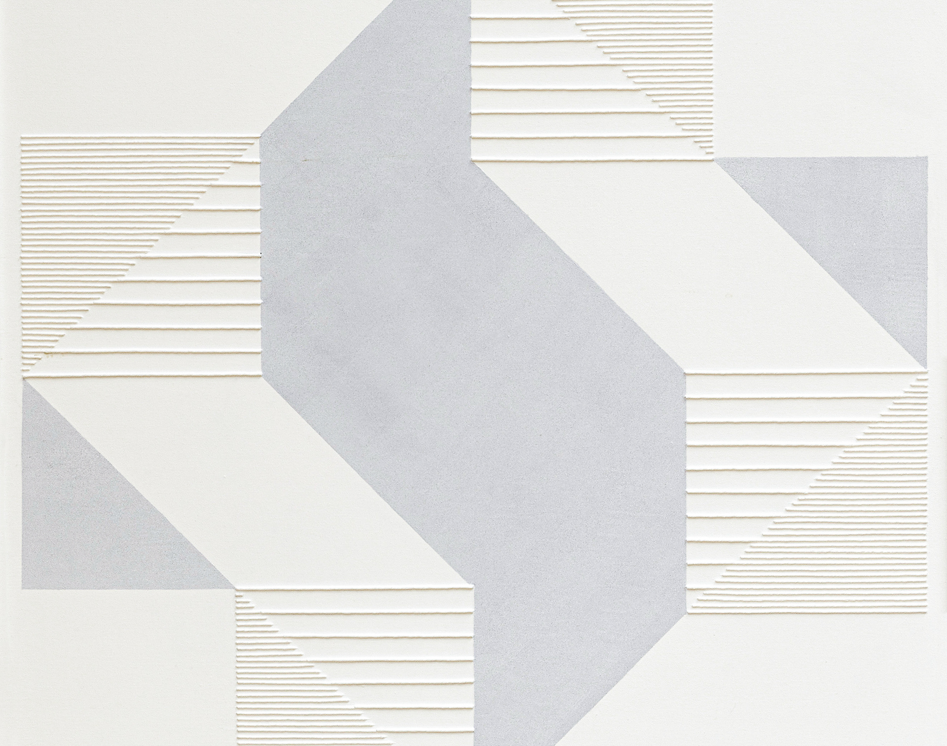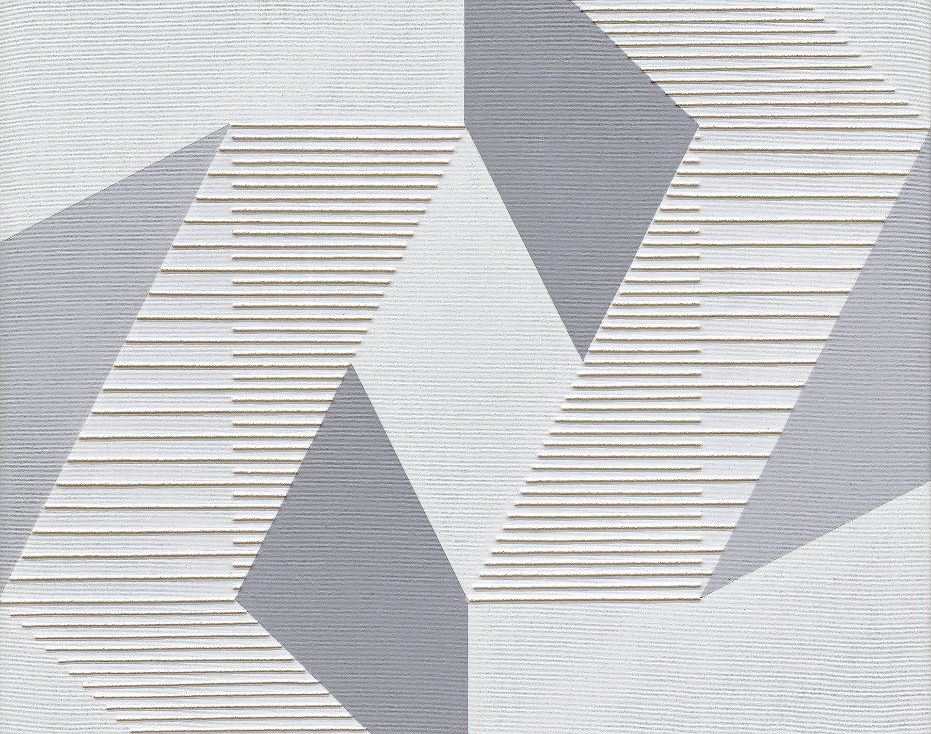 A fehér alapra mindig horizontálisan helyezem el a különböző vastagságú pamutfonalakból álló kompozíciót, melyek térbeli perspektivikus és plasztikus (relief) hatást keltenek. A kialakított kompozíciók hangsúlyosabbá tételét egy vagy két, különböző szürke tónussal egészítettem ki. Az elkészült munkáim az általam kívánt megfelelő formai és szellemi tisztaságot viselik, a kompozícióban elhelyezett formák – térgeometriát – képviselnek. A belső törvények alapján létrehozott geometrikus formák alá vagy fölérendeltséget, feszültséget vagy nyugalmat hordoznak. A formák variációs lehetőségei számomra új gondolatokat teremtve, számos kompozíció létrehozását biztosítják.”