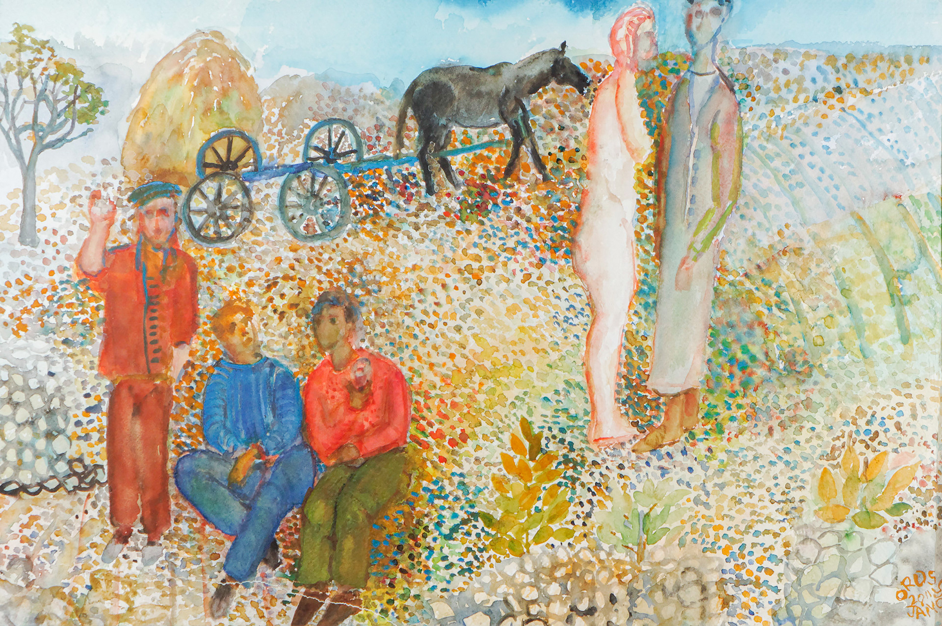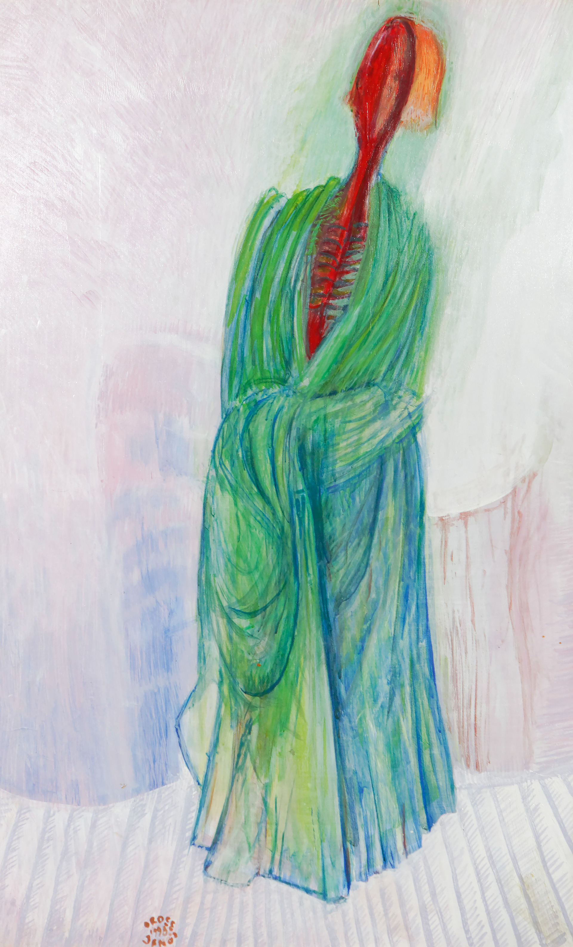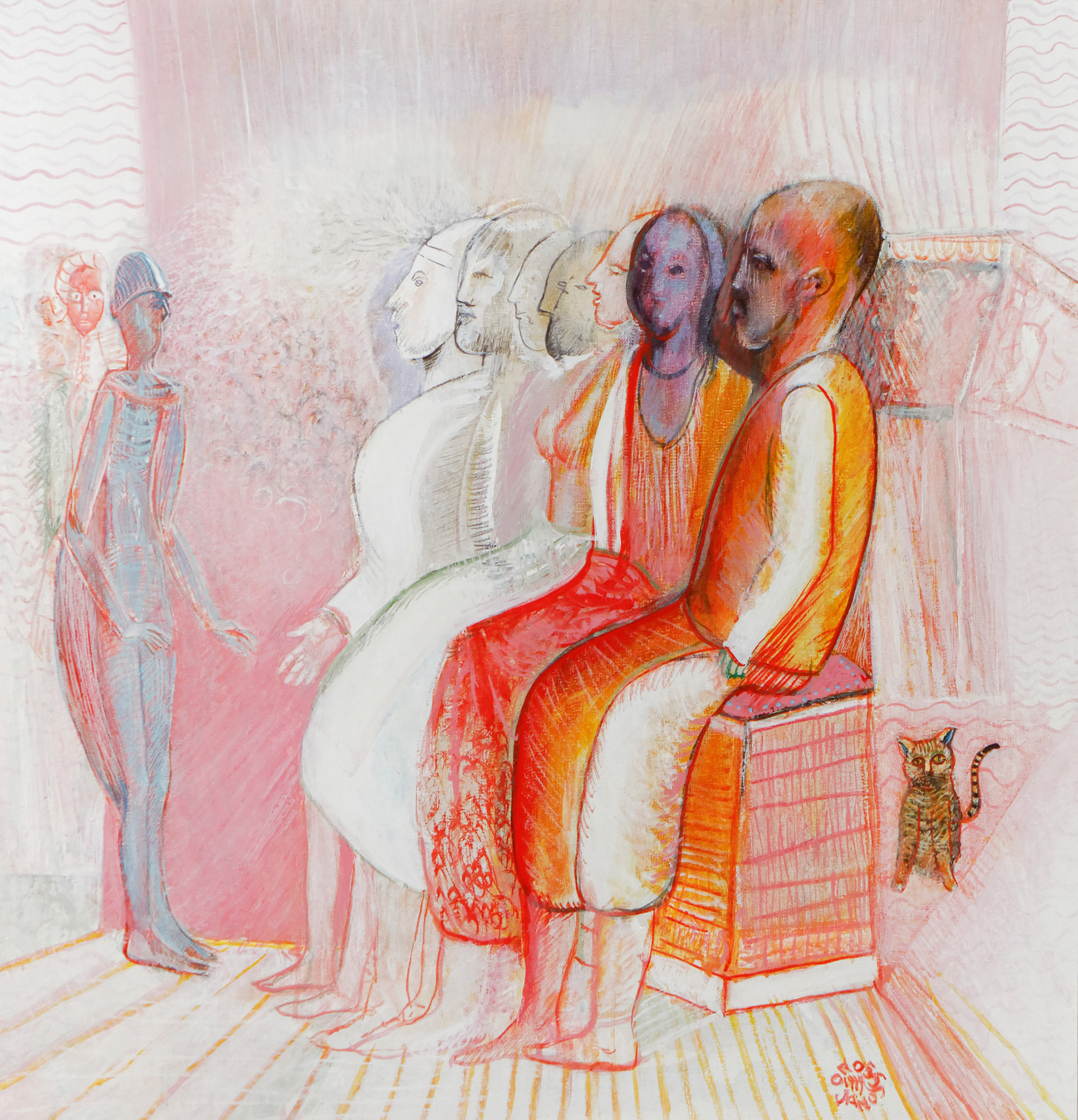 „... Sok értékes gondolattal határolhatjuk be művészetét, de ezek sorából talán a leghitelesebb az egyik jó barát, Csoóri Sándor elemzése, aki 1969-ben megjelent Faltól falig című kötetében így ír: „Aki csak azt festi a világról, amit lát belőle, s azt nem, amit tud róla, meghamísítja a dolgokat, s az érvénytelenség csöndes pusztítását készíti elő.” Mindez általában is alapvető megállapítás a művészetről, ám fokozottan igaz Orosz János egész életművére, aki valóban azt festi, amit tud a világról, nem hamisít, s ez által nem lesz érvénytelen. Igaz, nem szépeleg, nem idealizál. Nyers, őszinte. Nincs egyedül ebbéli művész-magatartásával a hatvanas, hetvenes években. Talán Tóth Menyhért, Schéner Mihály, Rátkay Endre vagy Galambos Tamás festészete állhat közel hozzá, ám mégis mindig magányos. Ami jellemzi őt, arra egy 1979-es nyilatkozatából hadd idézzek egy mondatot (Csoóri Sándor készített vele interjút a Tiszatájban): „A szakma igazi szeretete nélkül nincs művészet. Vagy belátóbban fogalmazva: a szakma igazi szeretete mindig igazi szenvedéllyel párosul.” Nos, ez az: a szenvedély. Orosz János semmit nem csinál közönnyel. Lehet, hogy a hétköznapokban megfontolt, tán tud kimért lenni, de művészetében nem. S hogy ez a művészi magatartás megőrződött idős korára is, arról a 80. születésnapja alkalmából a Budai Klub Galériában rendezett kis kiállítás is meggyőzhette a nézőt, 2012-ben. Ez természetesen csak egy kis felvillanás volt nagyon is „szélessávú” munkásságából, de bizonyos áttekintés is egyben, s ez még inkább igaz a 2015 őszén a Pesti Vigadóban megrendezett nagyszabású kiállítására, melynek – jogos – címe Visszatekintés volt. Az imént emlegetett szenvedély és a korábban emlegetett tudás, világról való tudás határozta meg a látottakat ezeken a tárlatokon is. A különös az, hogy a néző számára ez valamiféle disszonáns érzést okozhat, nevezetesen az, hogy szenvedélyes festő, de ez nem expresszionizmussal párosul. Indulatait szinte precízen kivitelezett képekben manifesztálja, ezek azonban mindig nyugtalanítóak. Nyugtalanítóak azért, mert harmónia és diszharmónia érzékelhető, legtöbbször együtt és egyszerre, szimultán módon tehát, s végső soron a világban valahol létező összhang felborulásáról is szólnak.”