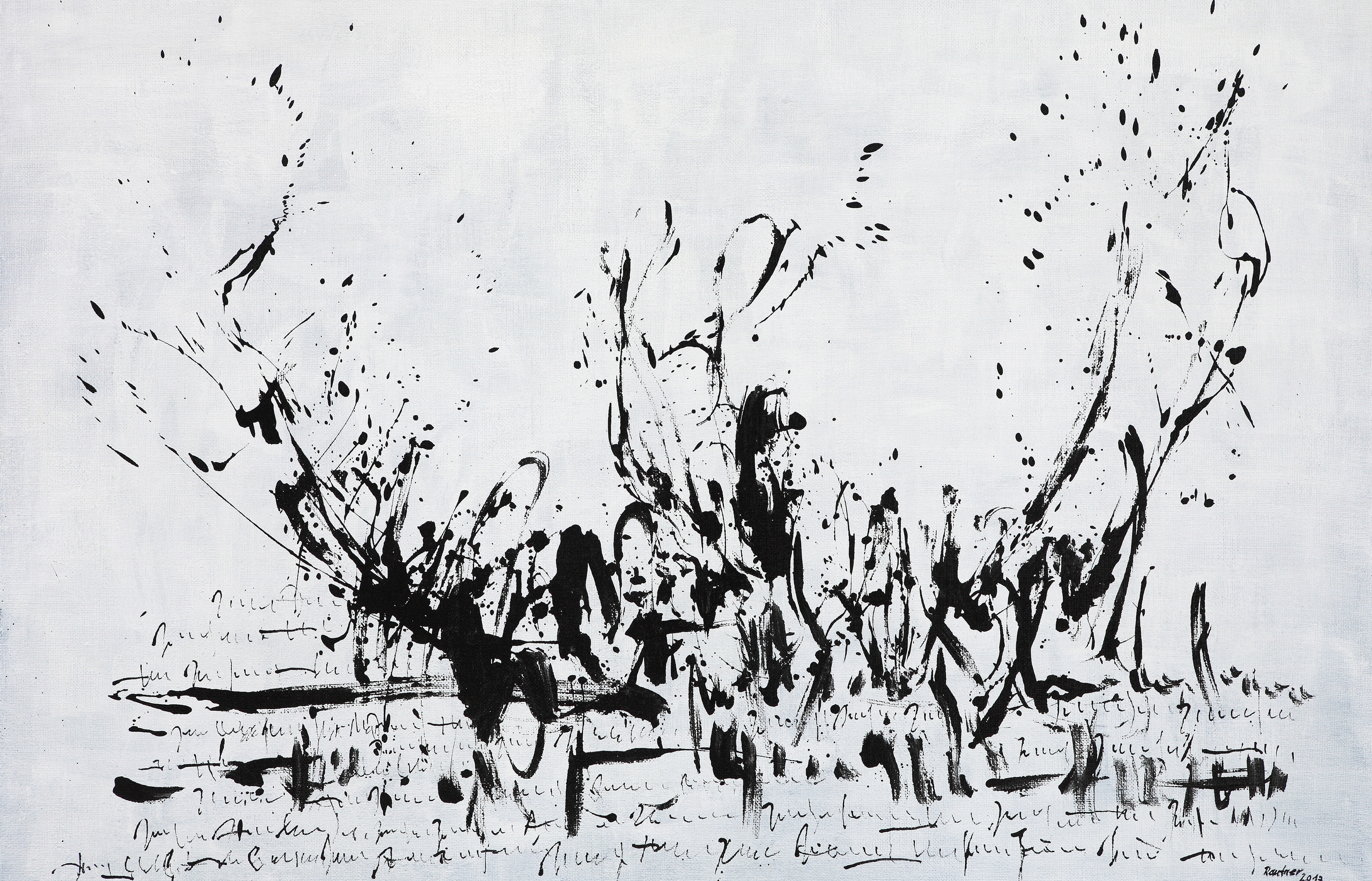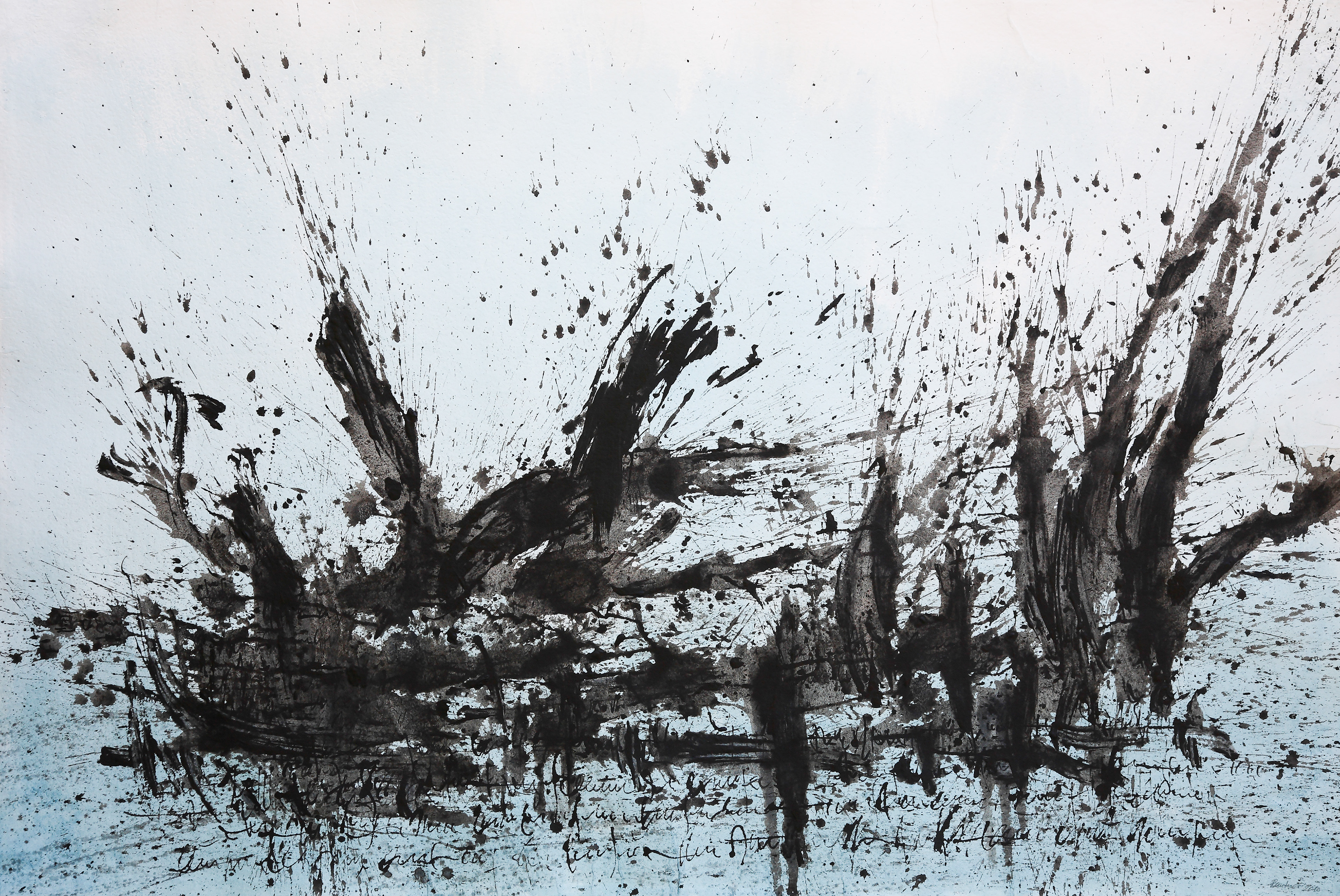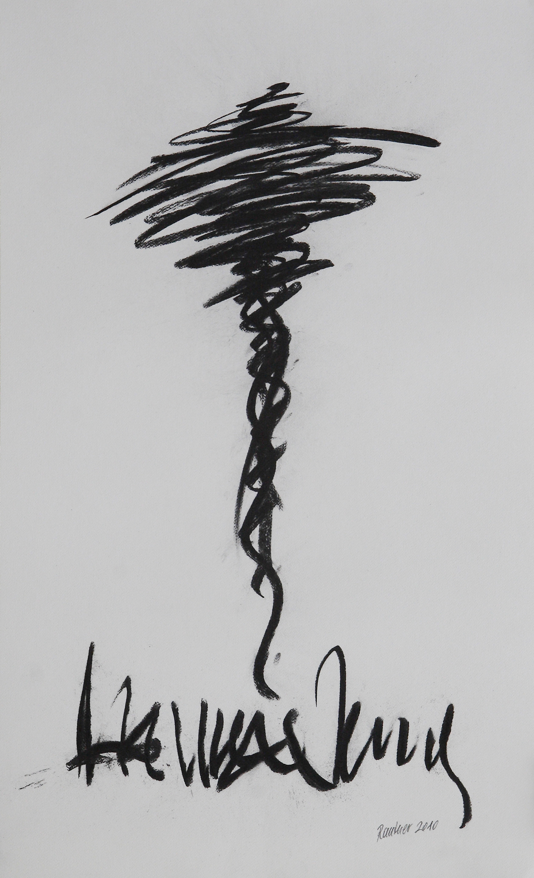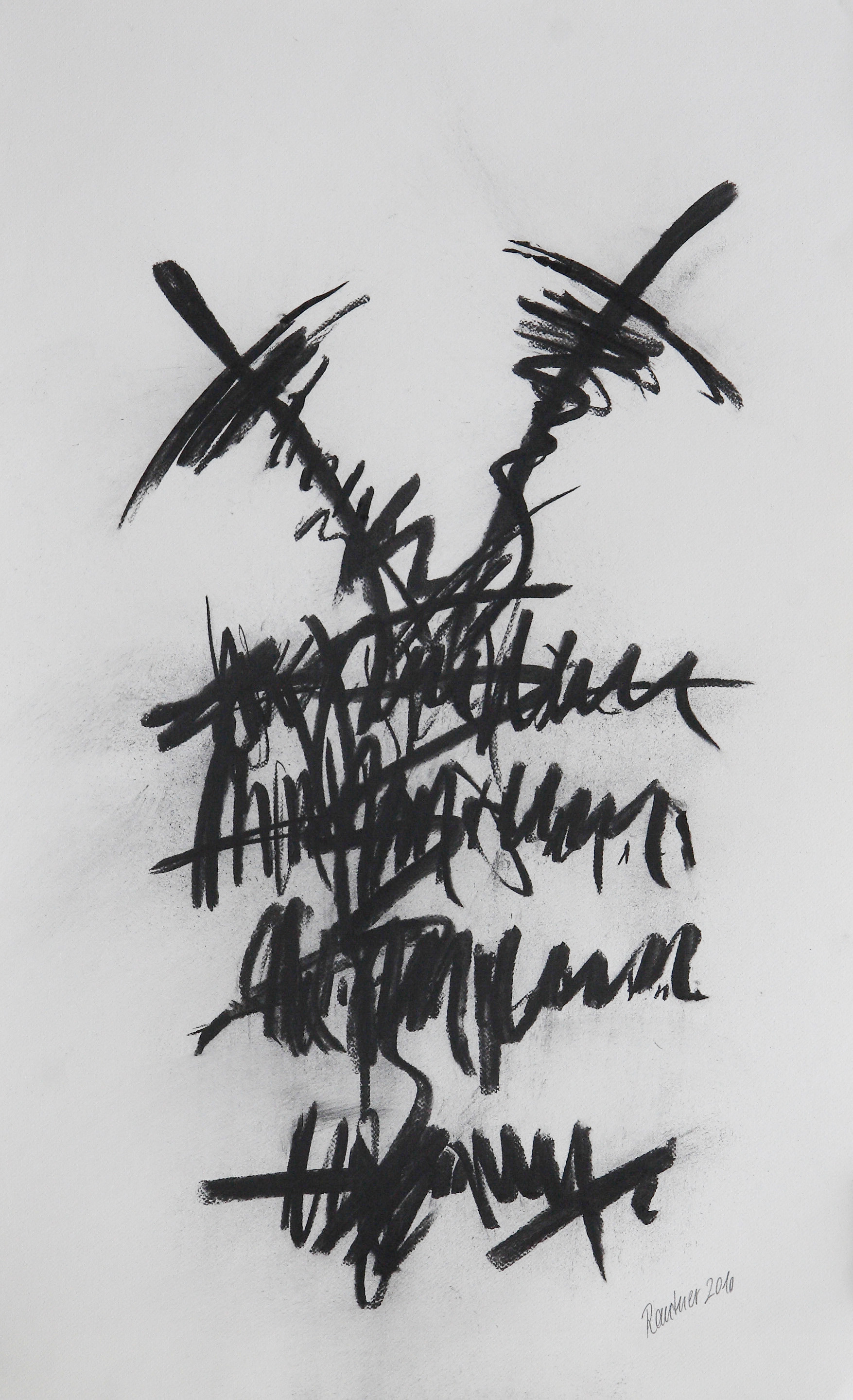 Most is, ahogy beléptünk azonnal megcsapott minket Fritz atmoszférateremtő képessége, amely hihetetlenül erős. S máris egy következtetés: ma – akár természetelvű valaki, akár távol van a látvány megjelenítésétől – itthon nincs igazán divatja az indulatnak… Fritz most is mélyütéssel fogad. Fehér papírfelületein, szénnel vagy rézkarcként sötét vonalrengeteggel mér szemeinkre csapást feszültségteremtő képességeivel.
