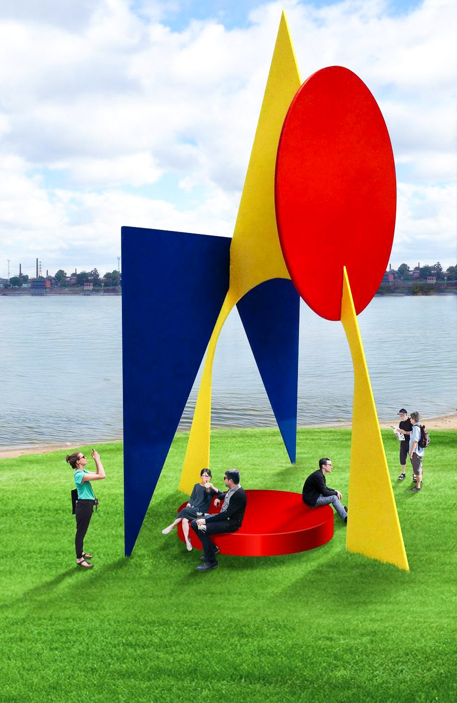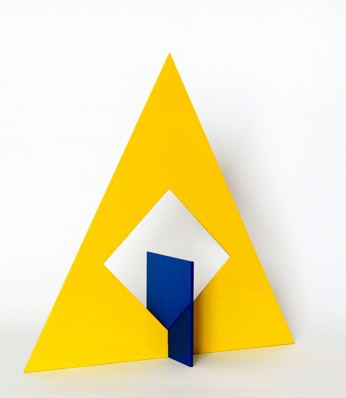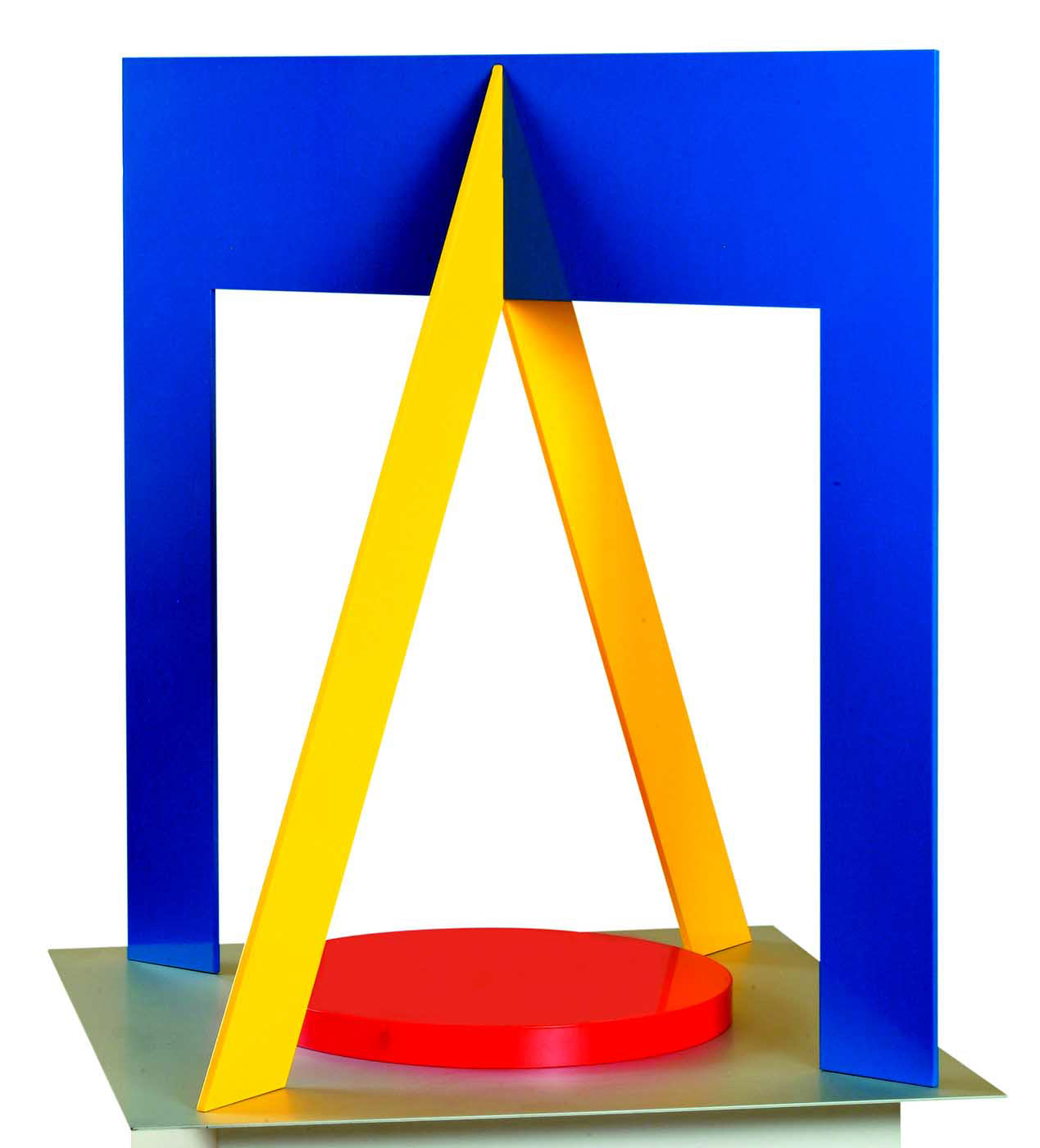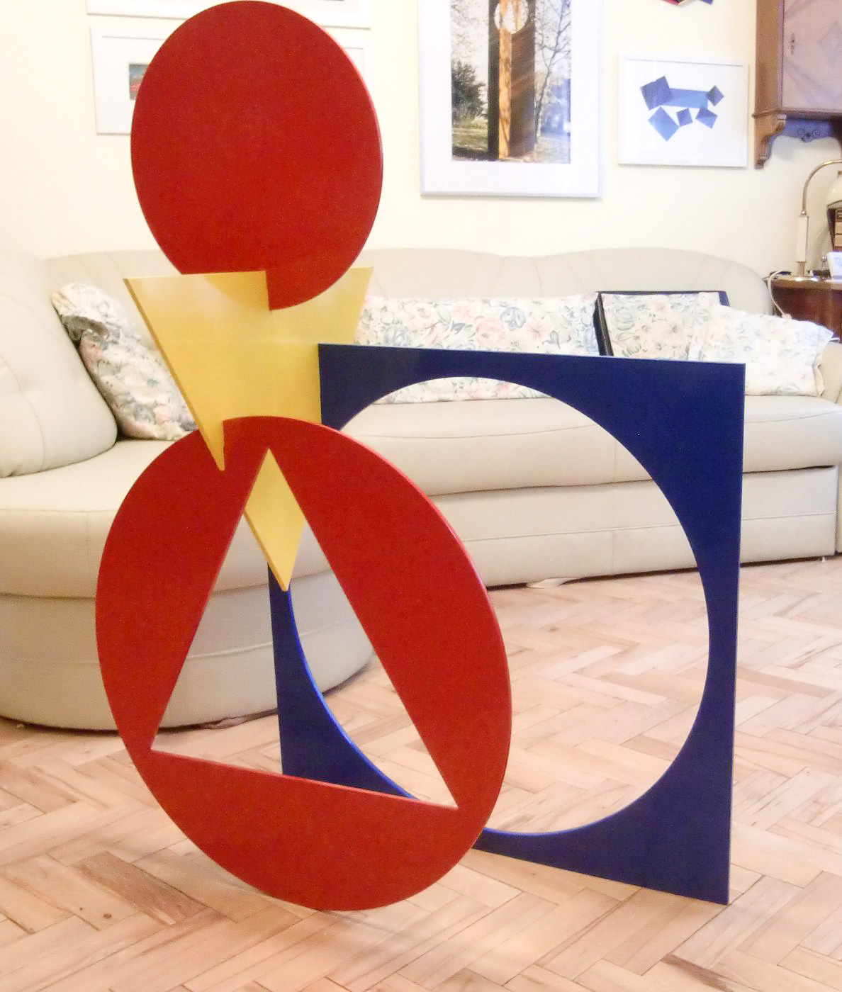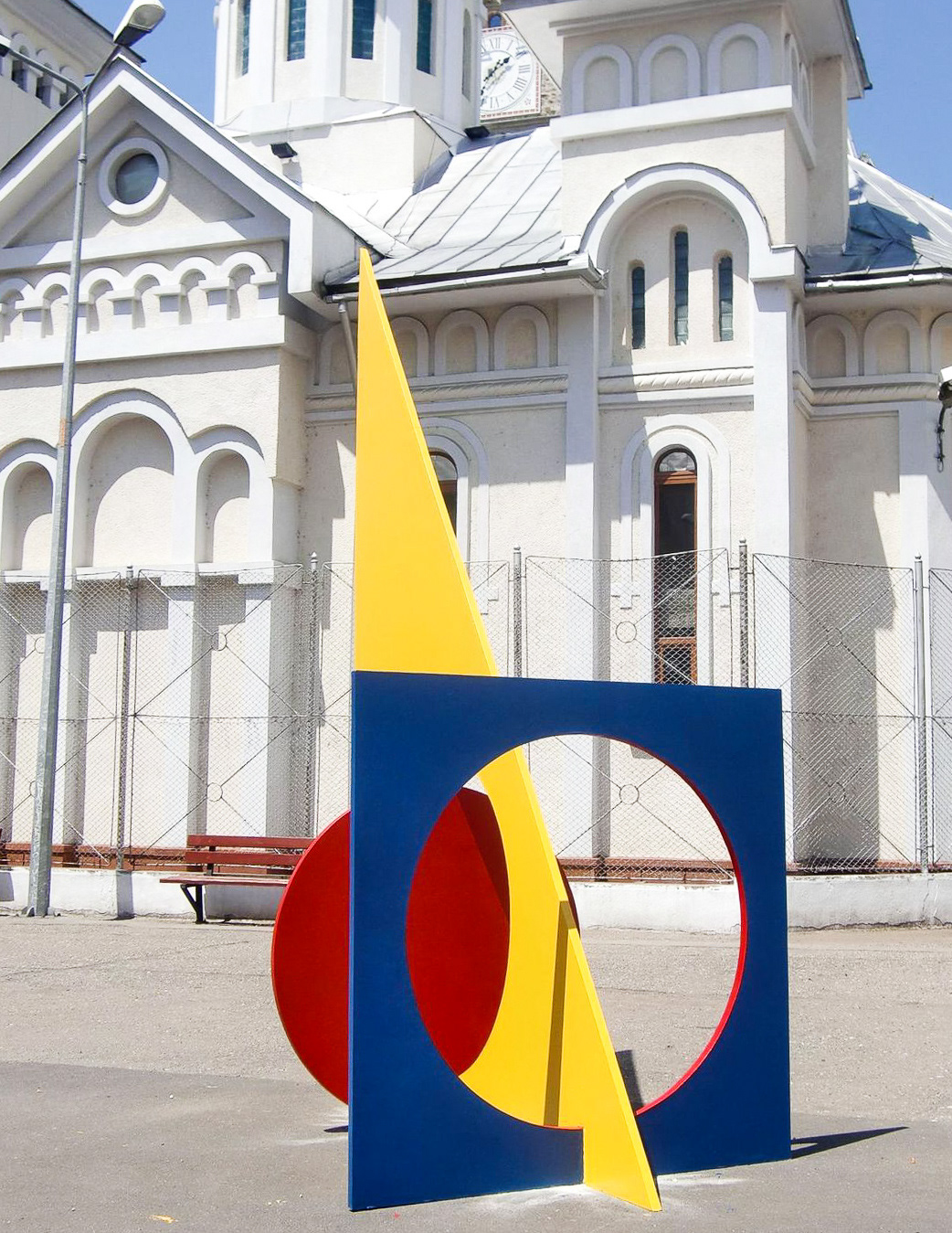 „Miért forog a vörös? miért agresszív a sárga? s végül – miért nyugodt a kék? Leginkább azért, mert a művész, Ingo Glass így akarja. Vagy talán azért, hogy ellentmondjon, túllépjen a Bauhaus mestereken, Johannes Ittenen és Vaszilij Kandinszkijen, akik az ugyanezeket az alapformákat – kör, négyzet, háromszög – és ugyanezeket az alapszíneket – vörös, sárga, kék – más értelemben párosítják össze (a négyzethez vöröset, a háromszöghöz sárgát, a körhöz kéket rendelnek). Kinek van igaza, és miért? Elméletileg nehéz erre felelni – noha mind Itten, mind Kandinszkij színtana alaposan kidolgozott, eldolgozott, de főleg festményekre, azaz síkokra vonatkozik, és nem annyira szoborra vagy térre. Azaz térbeli plasztikára. Mert Ingo Glassnak több évtizede ez az igazi műfaja. Ingo Glass a gyakorlatban valósította meg a színek és a formák összefüggésének rendszerét, számos olyan műben, amely egyszerre szín és forma. A forma síkokból, többnyire acéllemezekből áll ösze. A lemezek vagy csak síkban léteznek, s így leginkább sziluettjükkel hatnak, vagy – ami gyakoribb – a síkok egymáson áthatolnak, keresztezik egymást, egyik sík átvágja, felhasítja a másikat, míg a másik nyugodtan terpeszkedik a maga kiegyensúlyozott nyugalmával a talajon, talapzaton. Mindez a térben történik, szerencsés esetben a szabad természetben, ahol a formák akár 15 méteres magasságra is nőhetnek…”