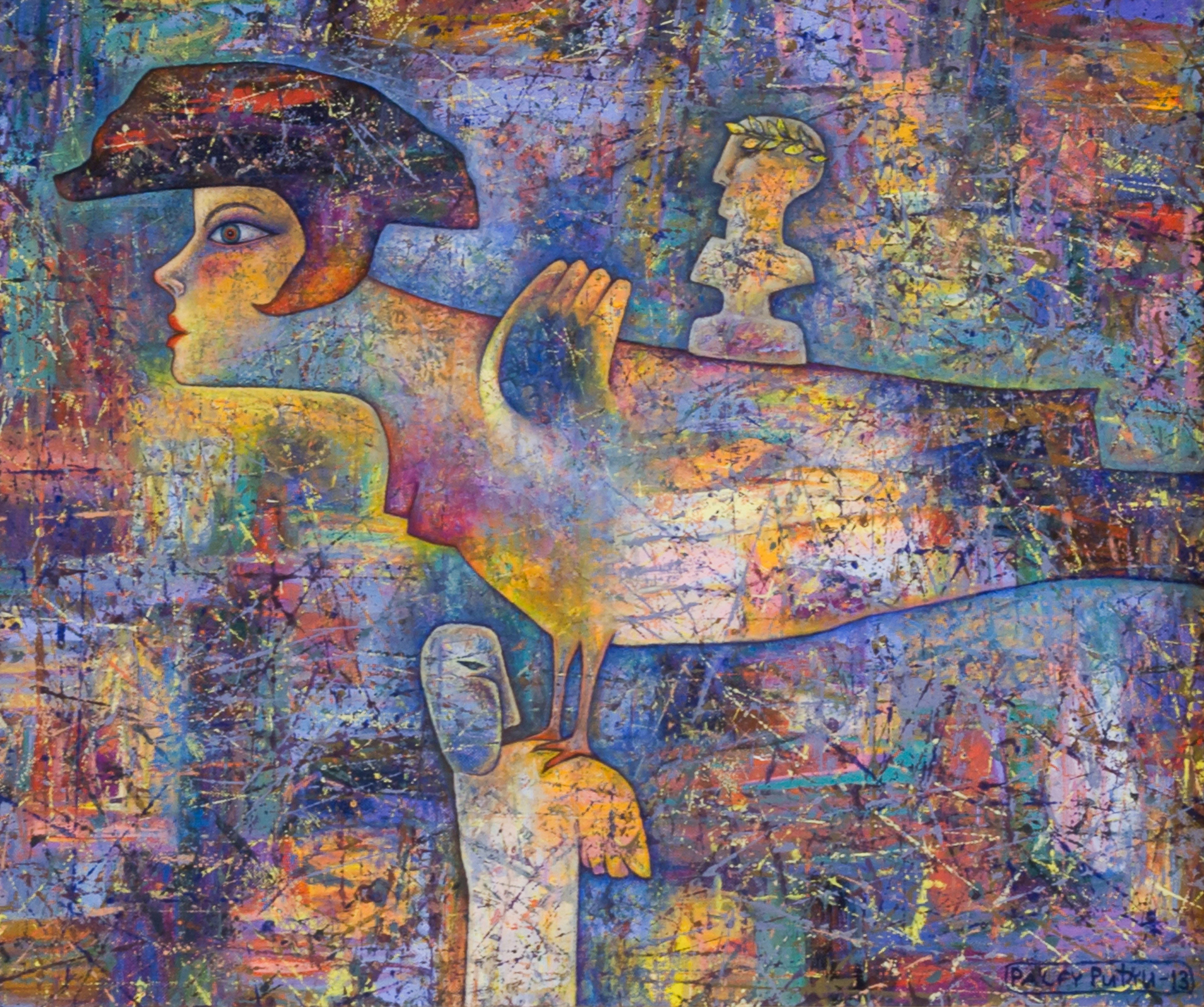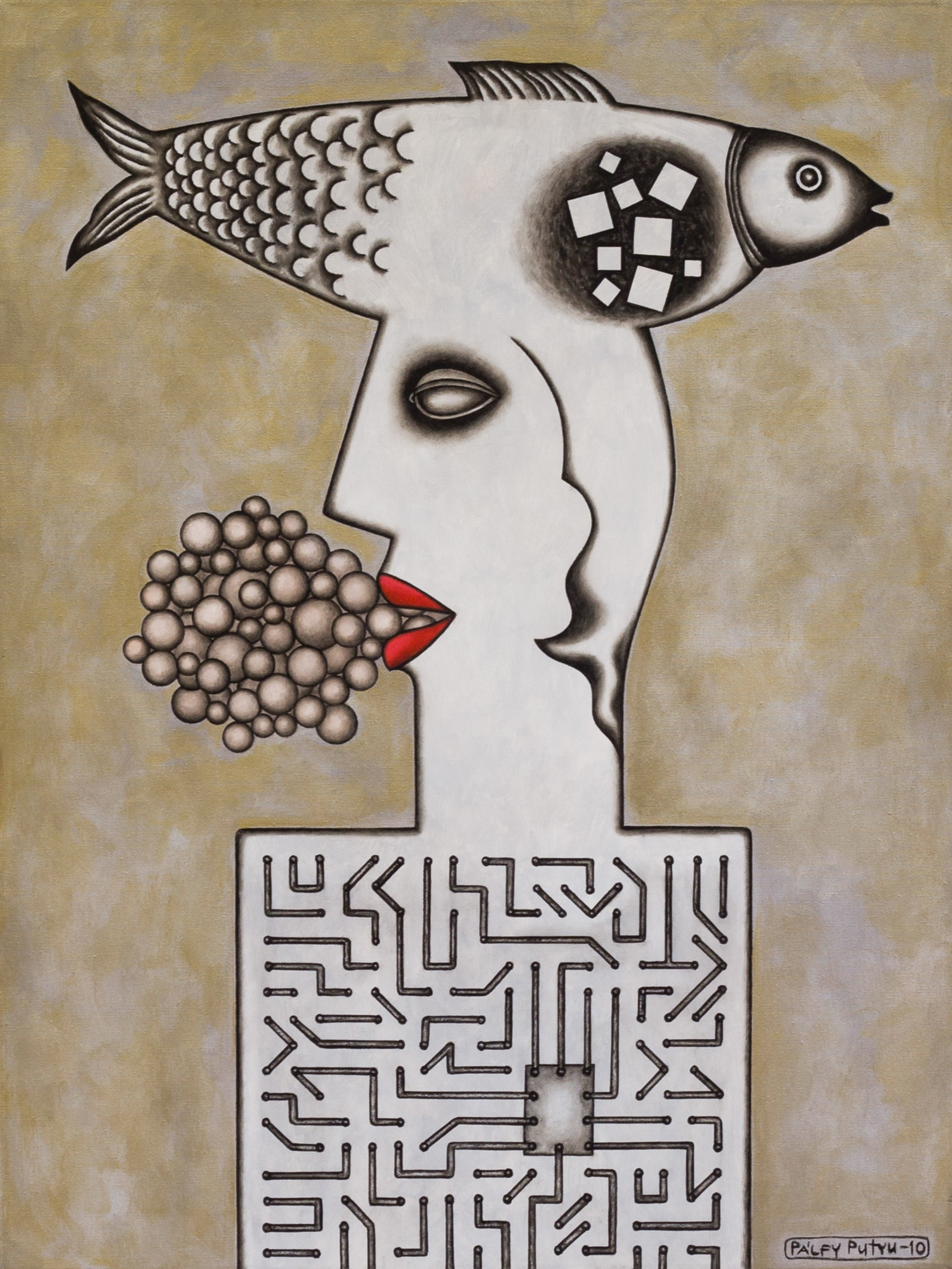 A mai kor egyik legmélyrehatóbb és ugyanakkor legáltalánosabb kérdéséhez kevesen mernek olyan brutálisan őszintén viszonyulni, mint Pálfy Putyu. képein a Nő, sohasem esztétizált szűz, gyenge, hamvas, kiszolgáltatott lény, ugyanakkor nem is csak a férfi tükörképe női attribútumokkal. minden kép egy külön kapcsolat, újabb harc, egy olyan dinamikus egyensúly, ahol egyik esetben a férfi, másikban a nő kerekedik felül. Putyu a modern művészet alapvető dilemmáira is keresi a választ, képei egyszerre absztraktak és figurálisak, munkamódszerében megjelenik az expresszív, és a szélsőségesen racionális, tudatos alkotásmód is. A véletlen és a rombolás esztétikája szintén áthatja műveit, azok mégis a legtöbbünk számára közvetlen és érvényes üzeneteket hordoznak…”