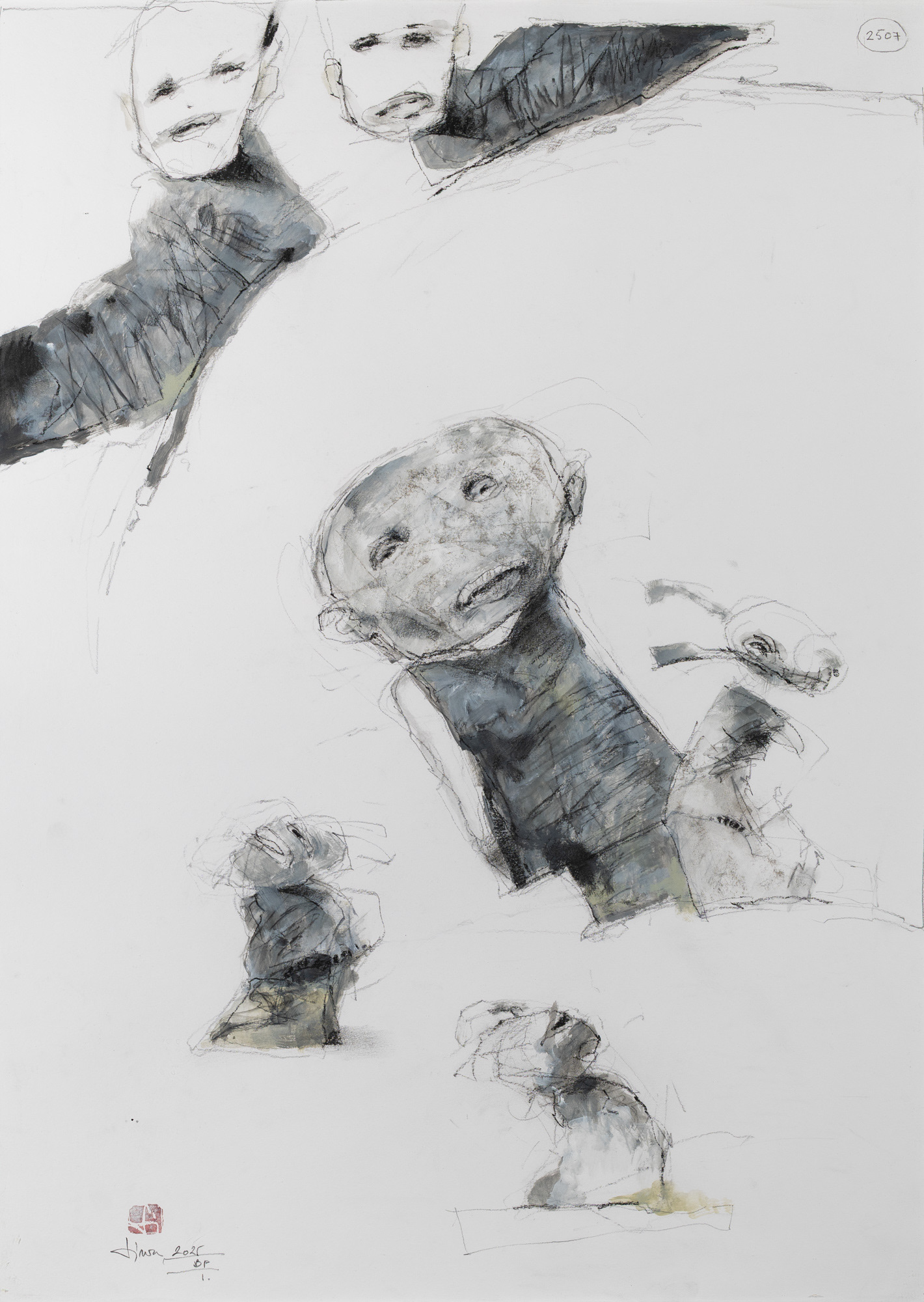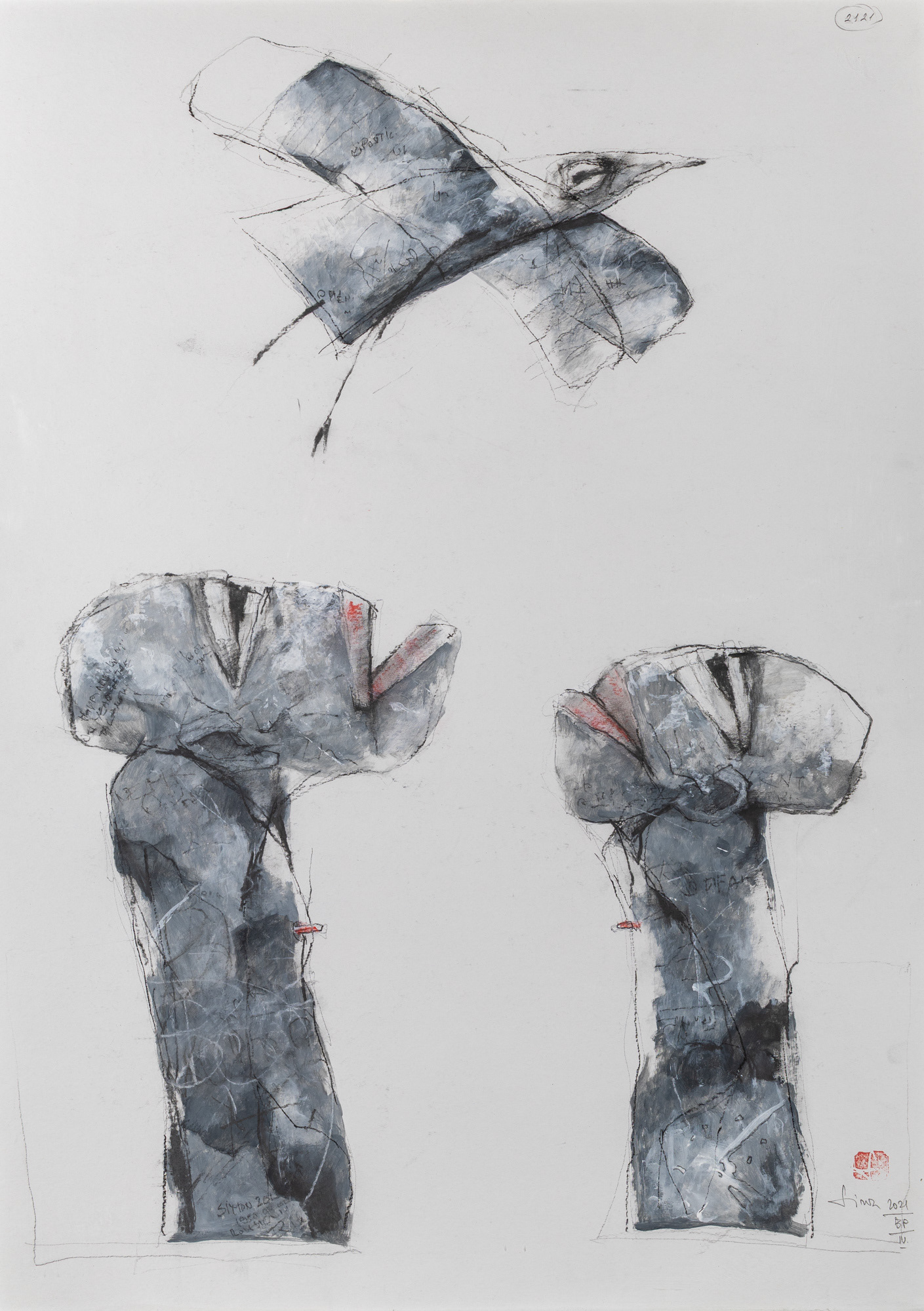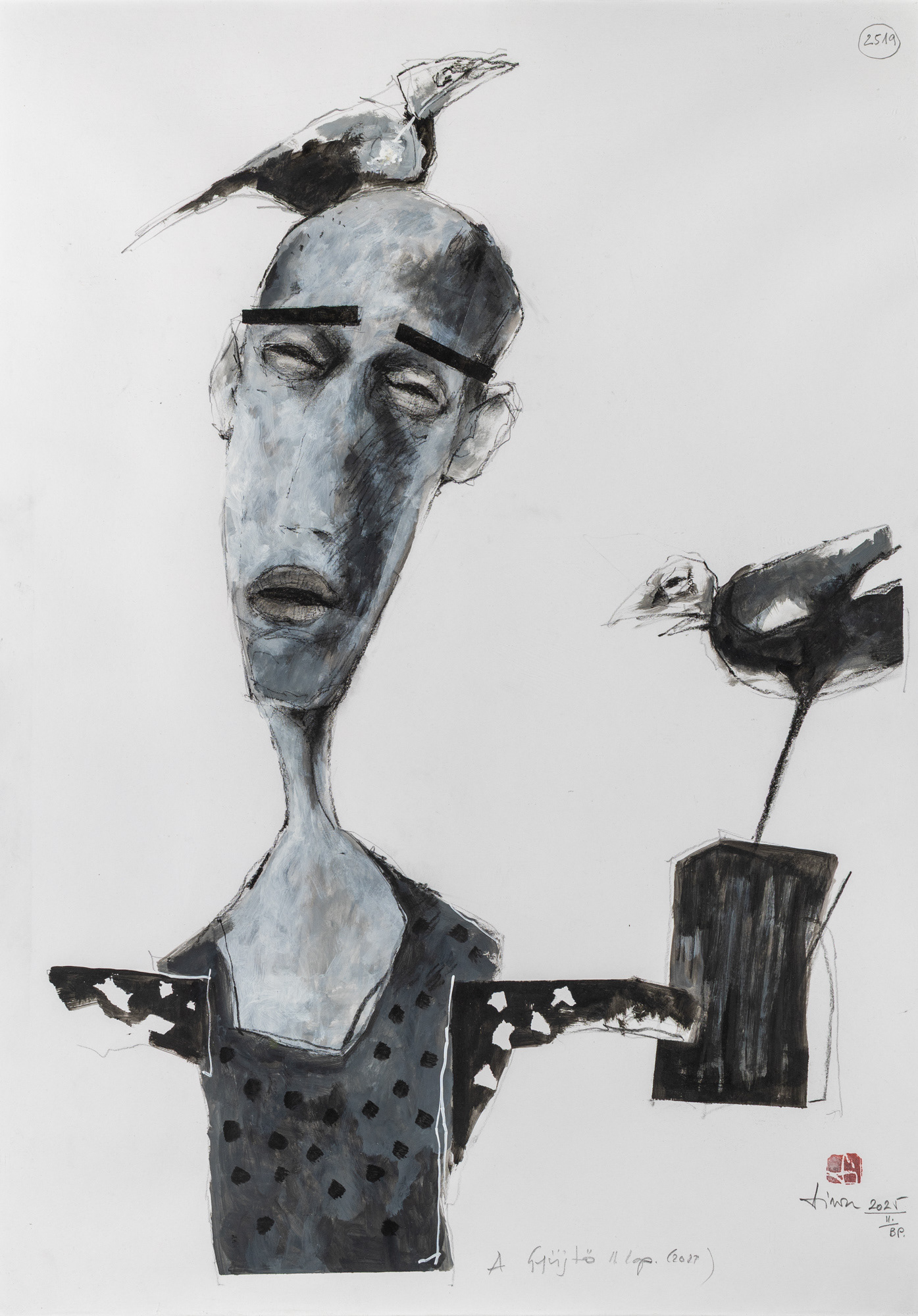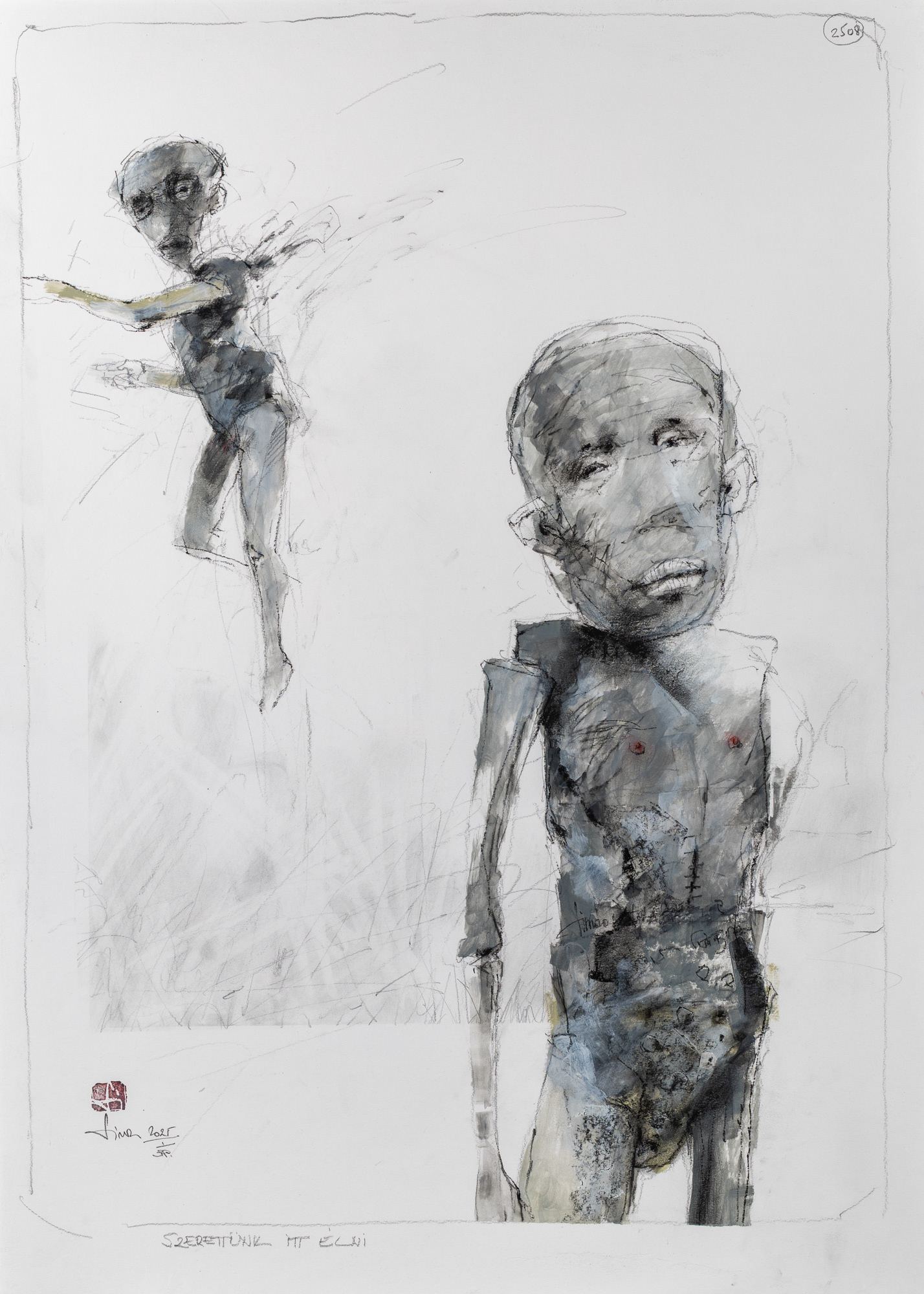 Figurális alkotó vagyok. Számomra bice-bóca és értelem nélküli lesz az a rajzom, ha nem tehetek a lap bármely szegletére egy lélekkel rendelkező lényt, legyen az egy bogár, egy madár, vagy egy általam kreált homunkulusz. Nem feltétlenül törekszem a szépre és a bájosra, inkább hajlok a drámára, hogy lényeimet olyan elidegenített helyzetben és térben helyezzem el, hogy azt a szemlélőnek kelljen magához emelnie. Úgy tűnik, az én figuráim eltévedve és irányt vesztve bolyonganak ebben a túltechnicizált világban. S ez igaz is, mert ezt szeretném ábrázolni. Arra törekszem, hogy grafikai lapjaimmal segítségért kiáltsak itt a Mesterséges Intelligencia megszületésének hajnalán, hogy ne veszítsük el az egymás iránt táplált szeretetünket és szolidaritásunkat.