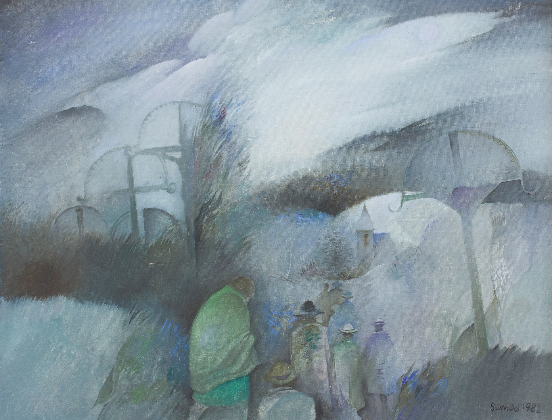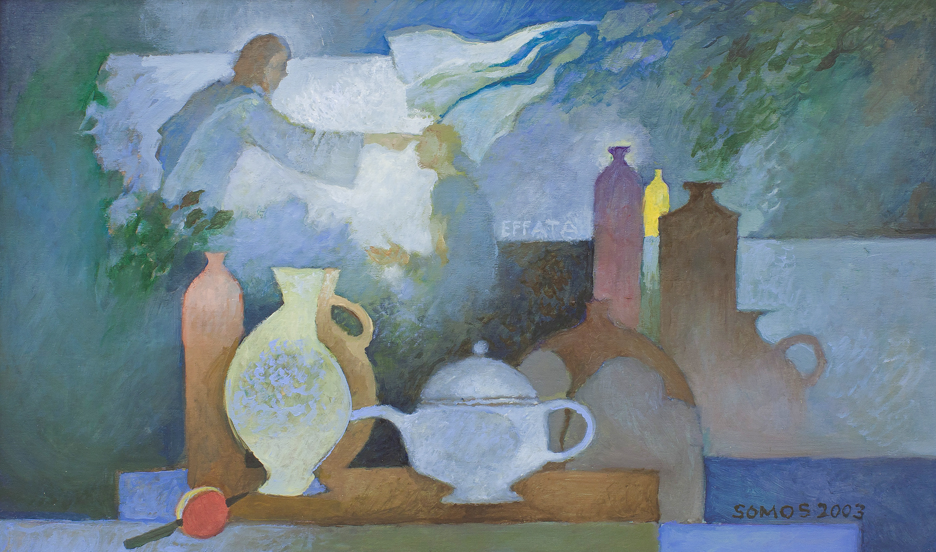 és az egyénit. A képek „testéből” a lélek szól, talán ezért régi-régi ismerőseink a Somos Miklós finom, tompa színszövedékében megjelenő átszellemített tárgyak. Arról beszélnek, ami összeköt valamennyiünket. Vallják és vállalják az emberi szolidaritást, s ezt félreérthetetlenül, folyamatosan és egyszerűen hozzák tudomásunkra.”