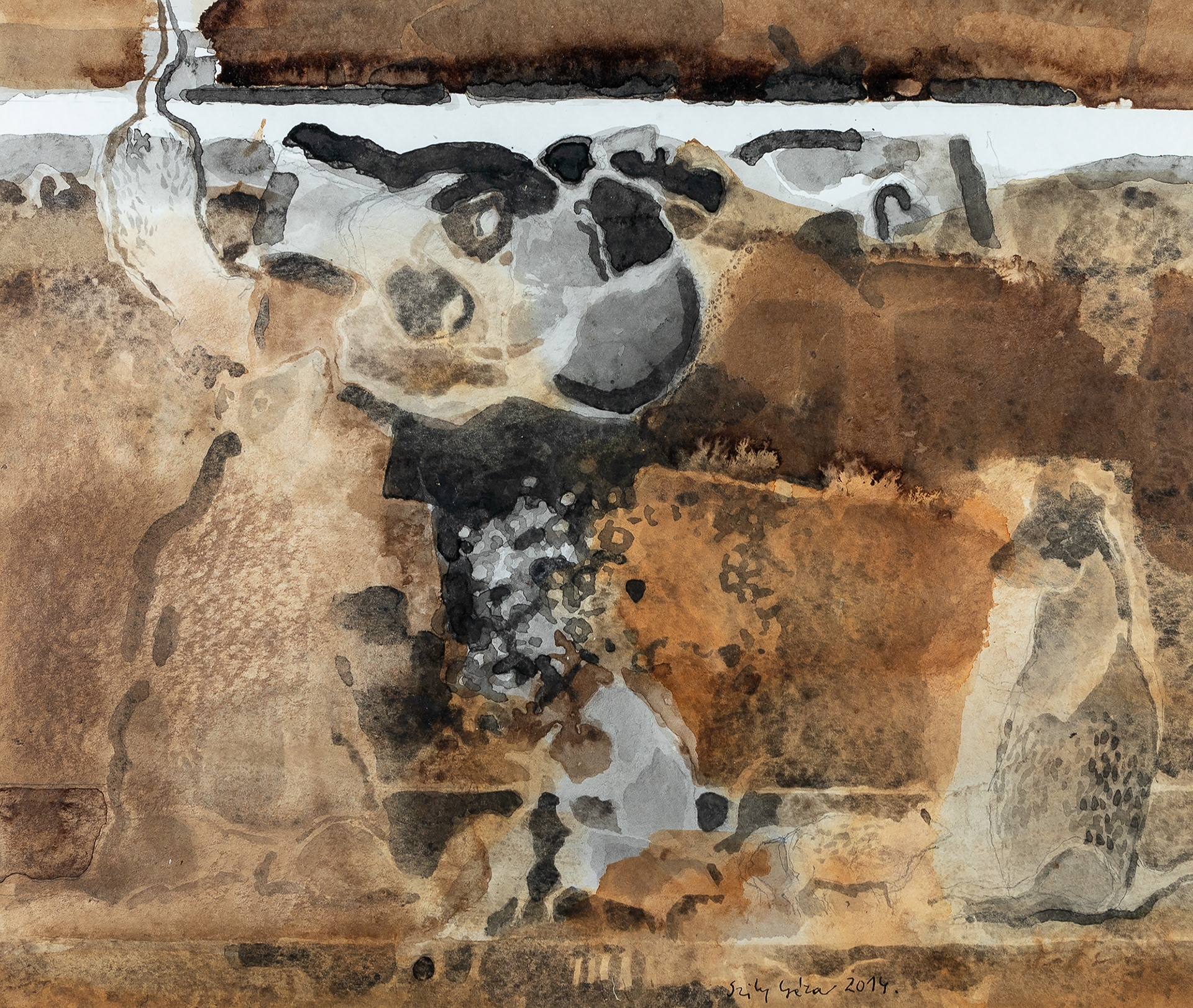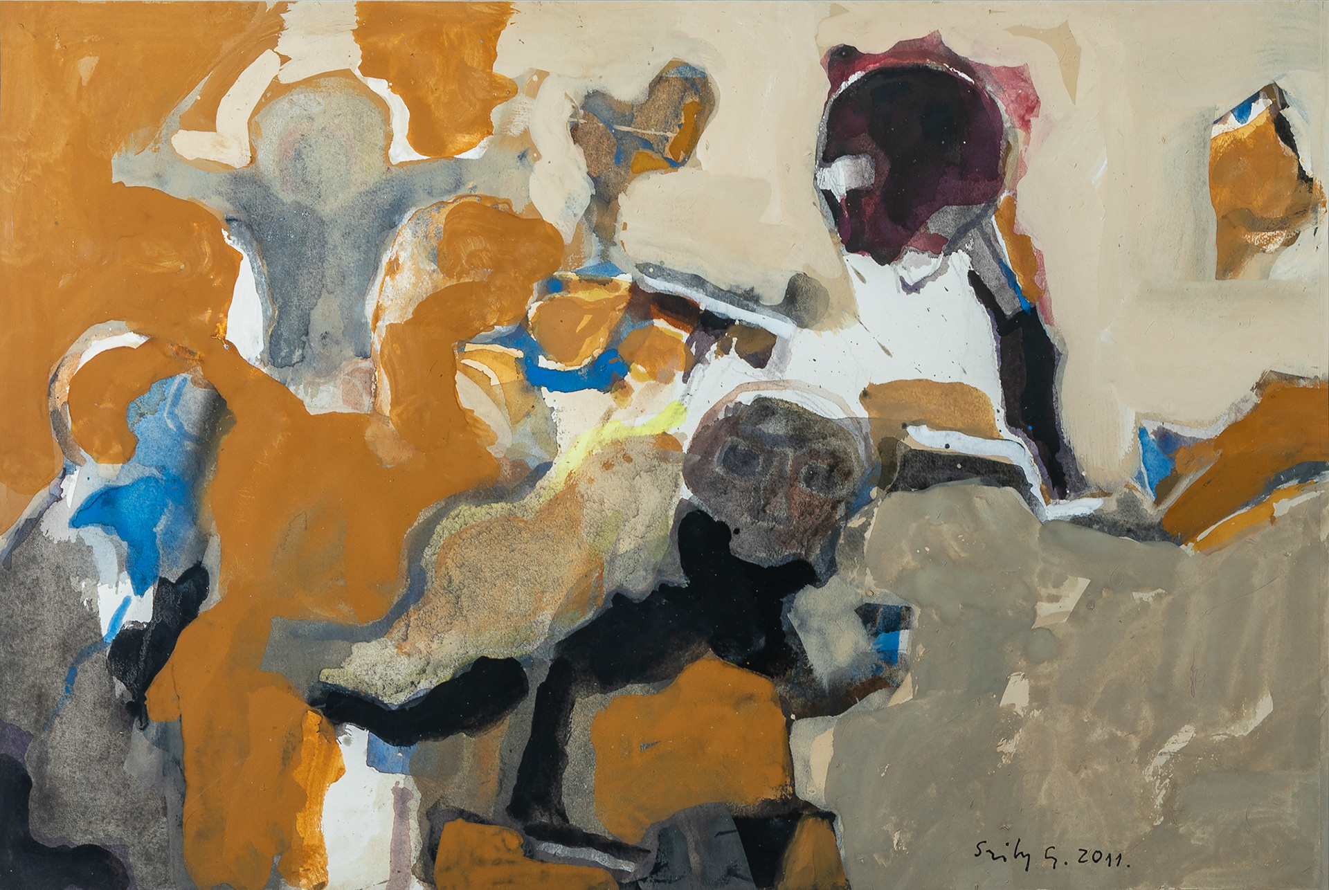 „Romantikus jelenetek – talán történelmi aktusok, talán irodalmi művek, színjátékok, emlékek parafrázisaként, vagy talán fantázia szülte szituációk –, furcsa szereplők tünedeznek fel Szily Géza alkotásain. A „feltünedezés” kifejezés nem irodalmi fordulat: az angyal, a vitéz, a lovas, a dárdavető (?) valóban előelőtünedezik a festői kavargásból, hogy aztán a színfoltok vad izzásában oldódjanak fel újra. Szily koloritja felfokozott erejű, mély intenzitású, lapjait élénkség hatja át. A kidolgozottságot a részletgazdagság jellemzi: folytonos, mindenhol jelenlévő egymásba olvadások, egymásra épülések színtere a képfelület. Akvarelljeinek feszültsége a rejtélyes történések, akciók és az azoknak teret adó-teremtő festői, elvonatkoztatott környezet ellentétéből táplálkozik: már-már konkréttá váló események zajlanak a megfoghatatlan térben, a pontosan értelmezhetetlen, elvonatkoztatott közegben.”