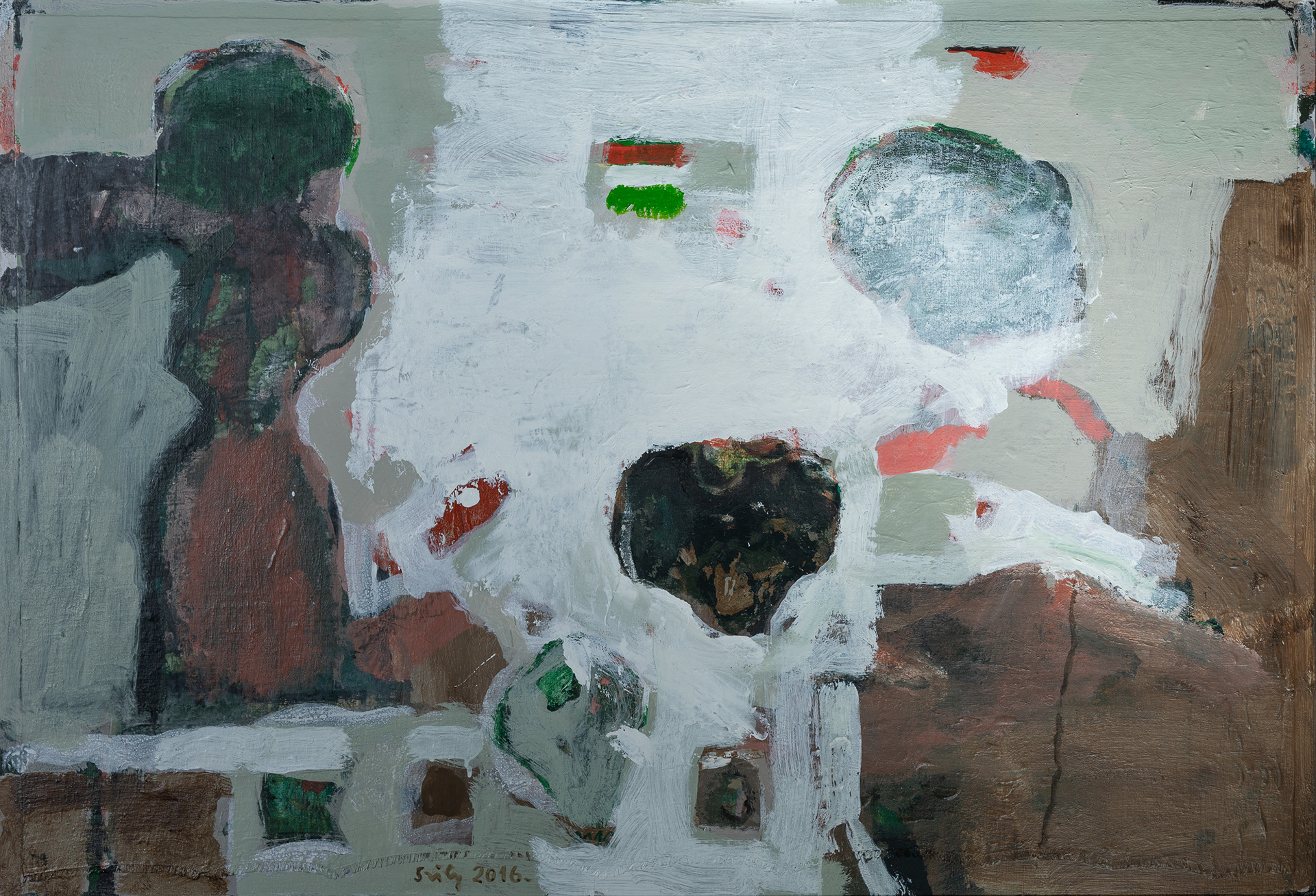 „A sokszor álomszerű, szürrealizmusba hajló kivitelezés elsőre csak a kompozíció egyensúlyát dicsérő, távolabb kell lépnünk a képtől, hogy felfejtsük annak motívumvilágát, halvány kontúrokkal határolt élőlényeit-figuráittárgyait. Néha egy-egy architektonikus elemet-jelet, geometrikus szerkesztést, vonalakat és párhuzamosokat csempész a képbe, megosztja, ritmizálja és összefogja a művet. Színkezelése sokszor „fáradt” visszafogott, melankóliát - bölcseletet (a kevés néha több) sugalló, máskor szinte elődübörögnek a színek, pompázatos a koloritás.”