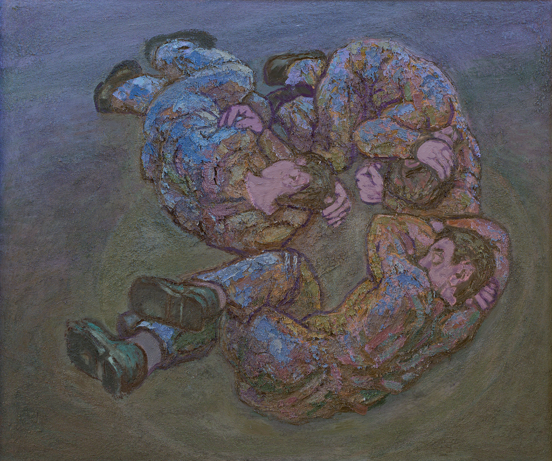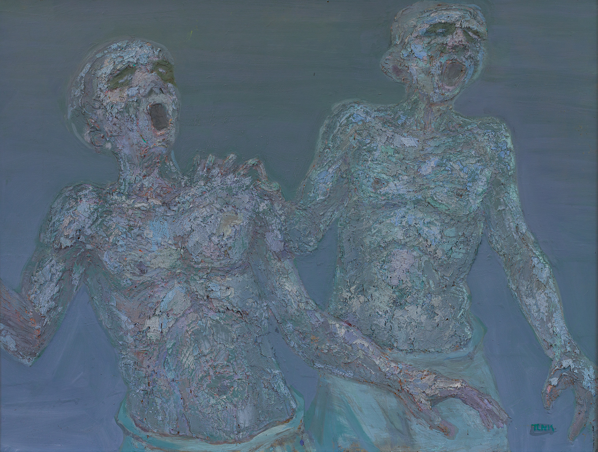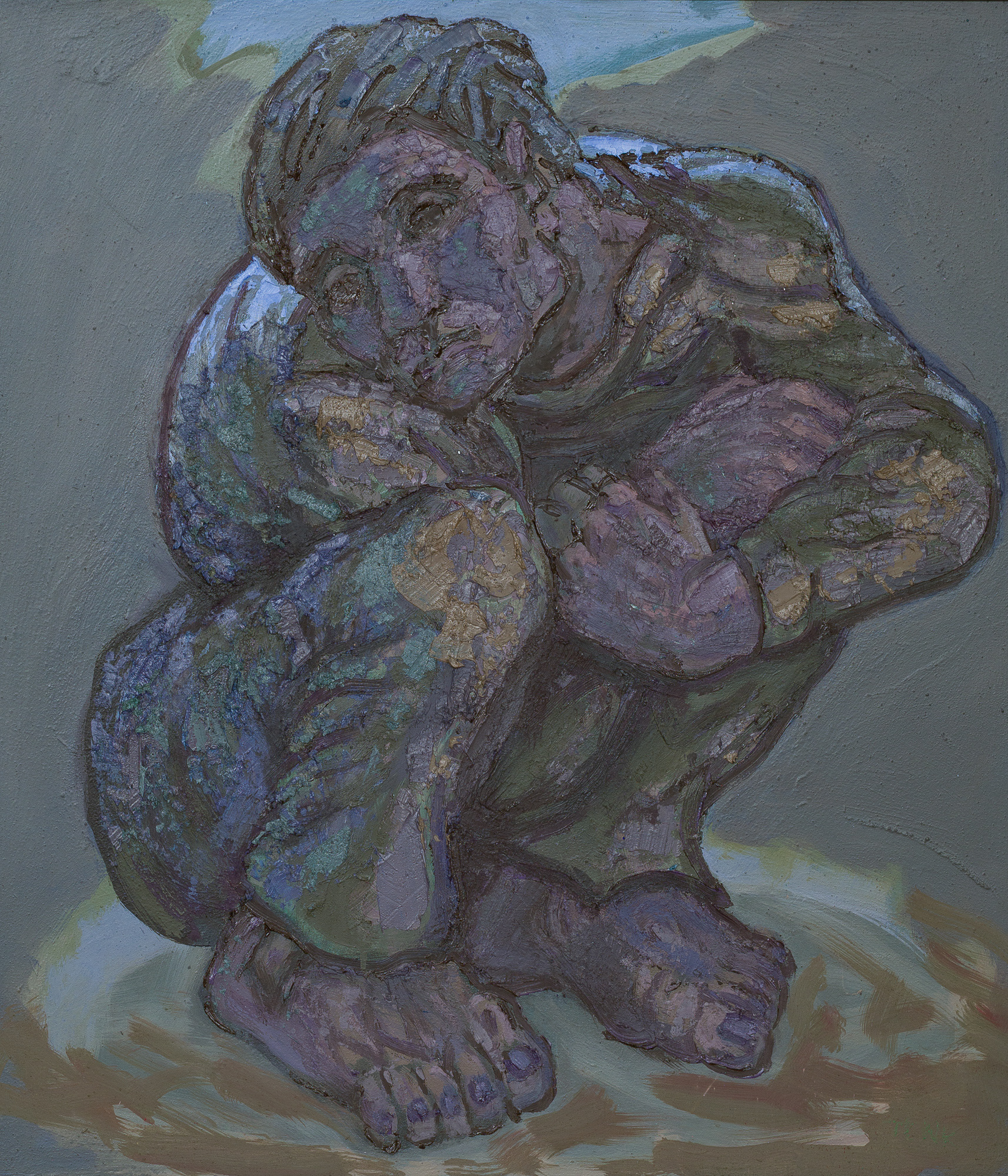 Az utóbbi években egy új képciklus jelent meg Tenk László művészetében, a kuporgó, szorongó alakok ábrázolása… Tenk szorongó, kuporgó alakjait ábrázoló festményei terápiás képek: az alkotó belső, feszítő érzései kikerülnek a farostra, és nem belülről fojtogatják tovább. A figurák testtartásukkal, arckifejezésükkel az emberi élet viszontagságait, küzdelmeit jelenítik meg, miközben a szemlélőből együttérzést váltanak ki.