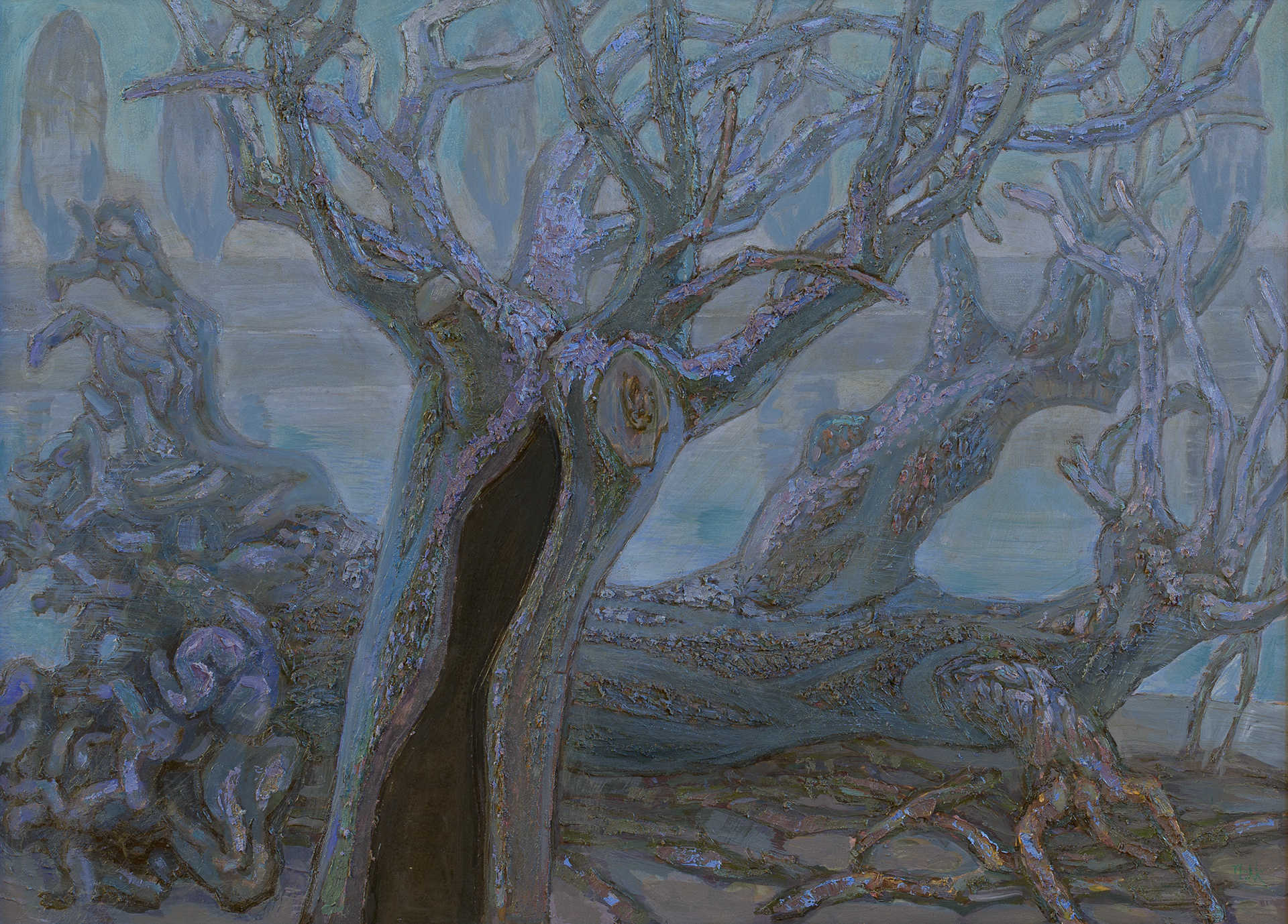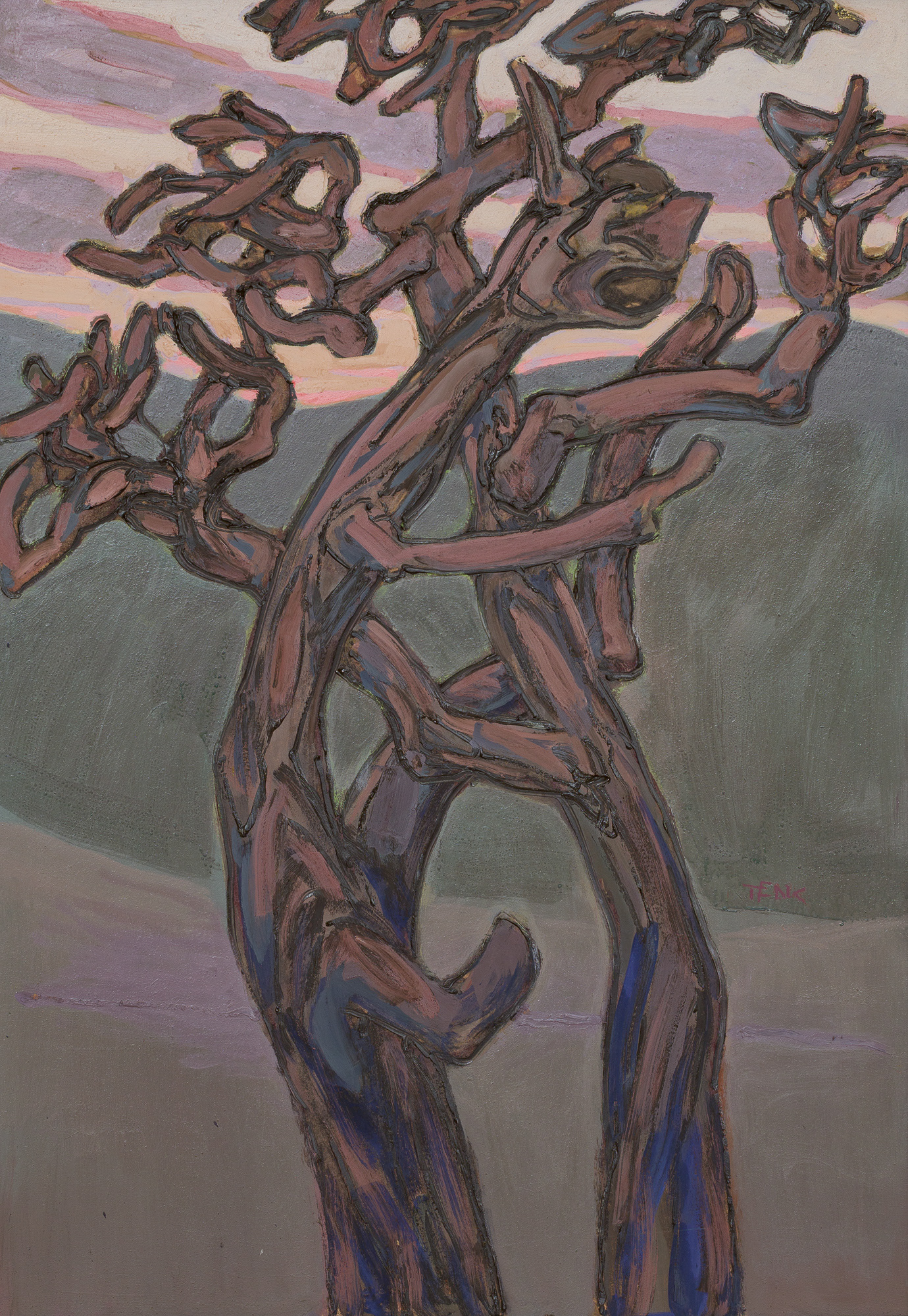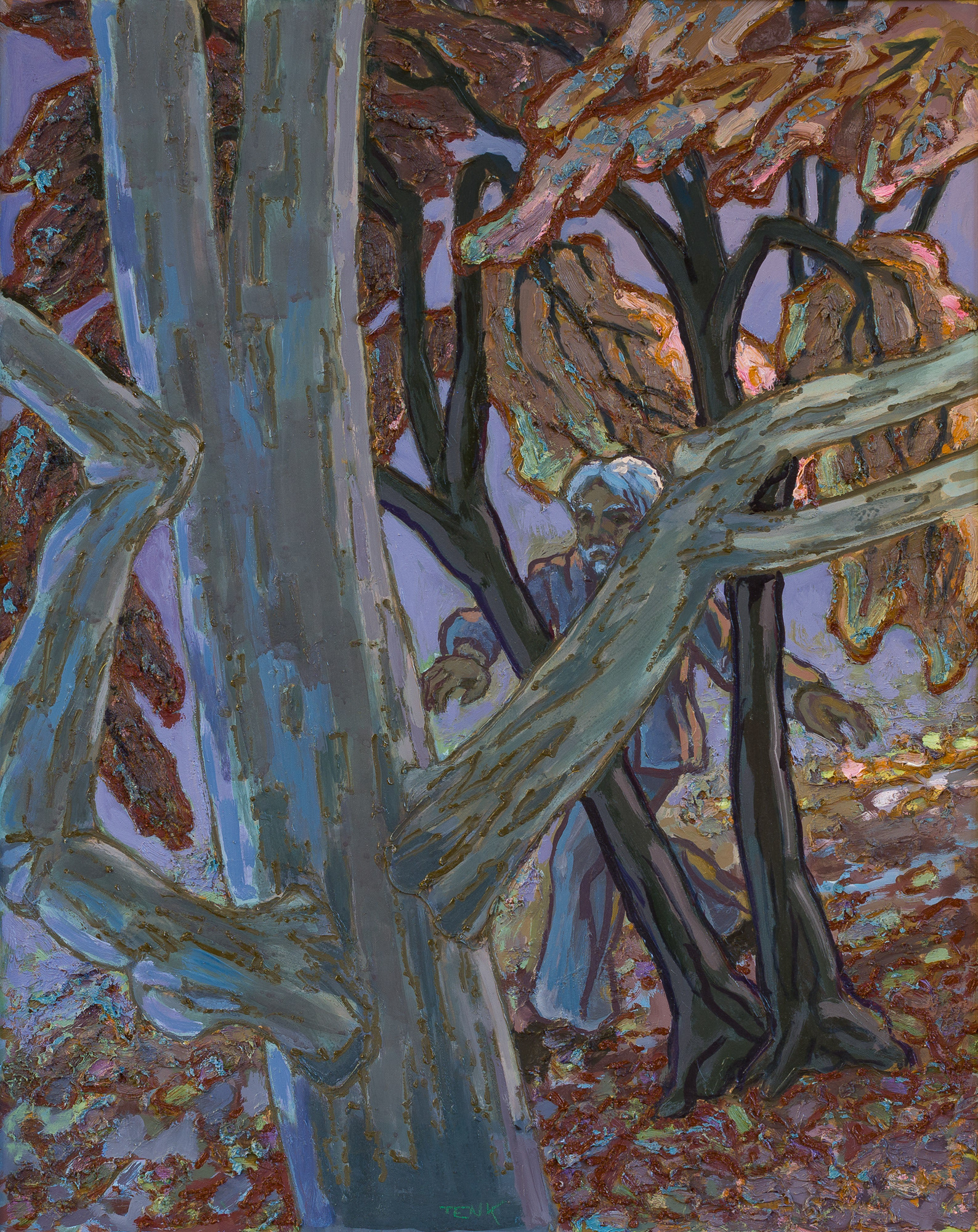 „Minden jó kép önarckép”– vallja Tenk László, akinek antropomorf fái metaforikus önábrázolások, a gubancos ágak az emberi lélek bonyolultságának szimbólumai; a kérges, szenvedő törzsek mindennapi történések és egyéni traumák rögzítői is. Az ezredfordulót követő képeit már nem a külső élmények, impulzusok, hanem az alkotó lelkének belső rezdülései, rezonálásai generálják. Magán- és közéleti történések hatására nemcsak kiadja magából a megélt traumákat és baljós előérzeteket, hanem mély szimbiózisba kerülve az alkotás időn kívüli állapotával, eggyé válik tájaival, épületeivel, fáival – a nappallal és az éjszakával, a derűvel és a búval.”